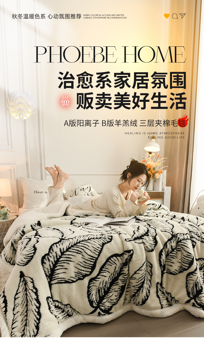 (总)恋绒家纺 2025新款阳离子三层舒棉绒毛毯毯子,爱心结,斑马纹,复古花枝,蕉叶白,蕉叶绿,幕朵,优雅咖,郁金香