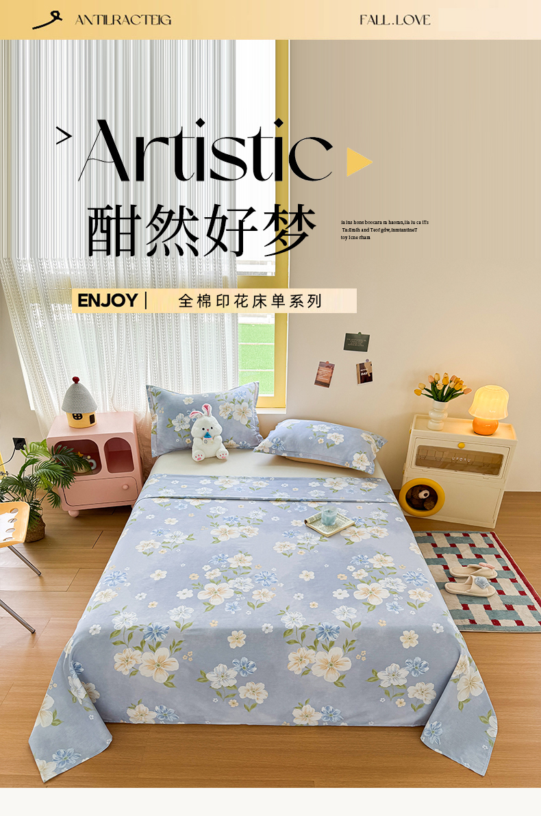 (总)尚帛 2026新款全棉时尚印花单床单,艾米丽-绿,宠爱,花间采趣-咖,可可甜心,可颂日记,浅影,如玉如兰,碎花学院,五星集,叶柔粉,叶之恋