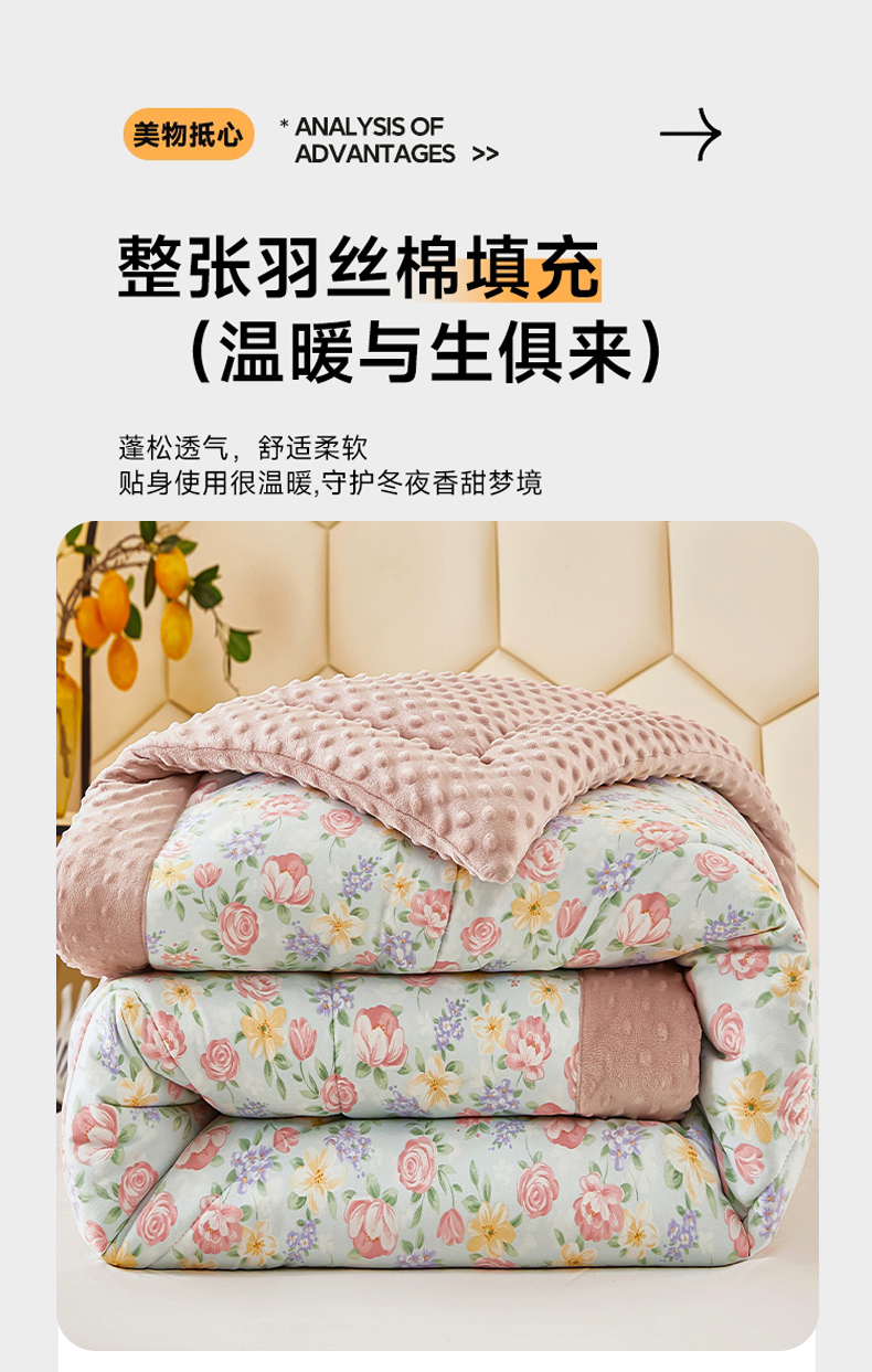 • 91家纺网 家纺一手货源 找家纺 蔻之羽 2024新款水洗棉豆豆绒冬被直播爆款被子被芯 安娜花园,安娜花园