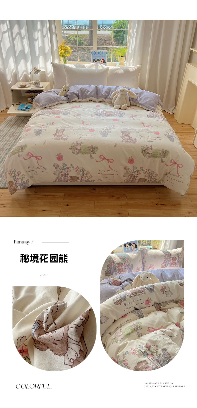 (总)六巷胡同 2025新款INS卡通童趣混搭风全棉四件套第二系,混搭-蛋糕围兜熊,混搭-奶油酣睡熊,混搭-奈斯羞羞狗,混搭-小蓝格甜点,混搭-雪糕哈皮熊,混搭-月亮睡睡熊