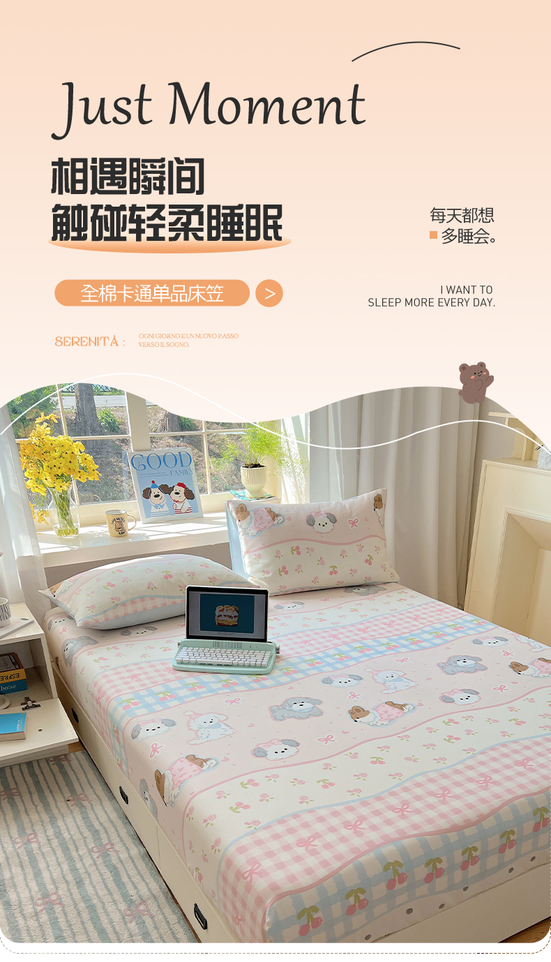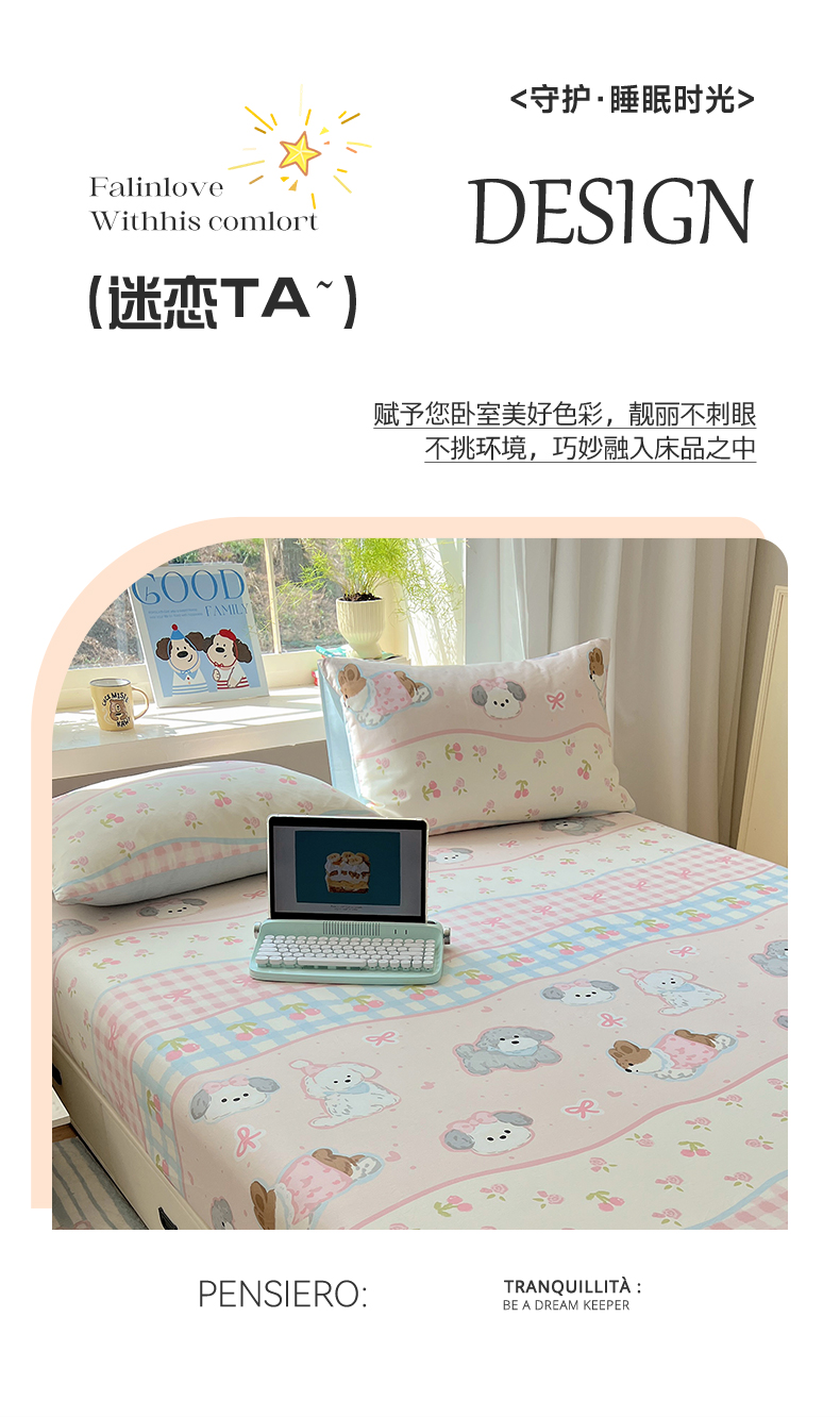 六巷胡同 2026新款40支全棉13070卡通单品床笠 洋气柯基崽