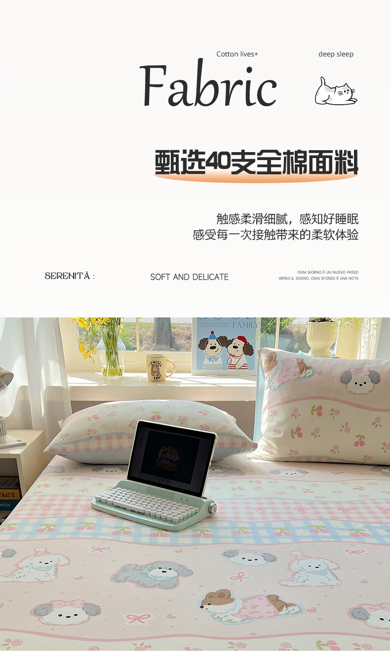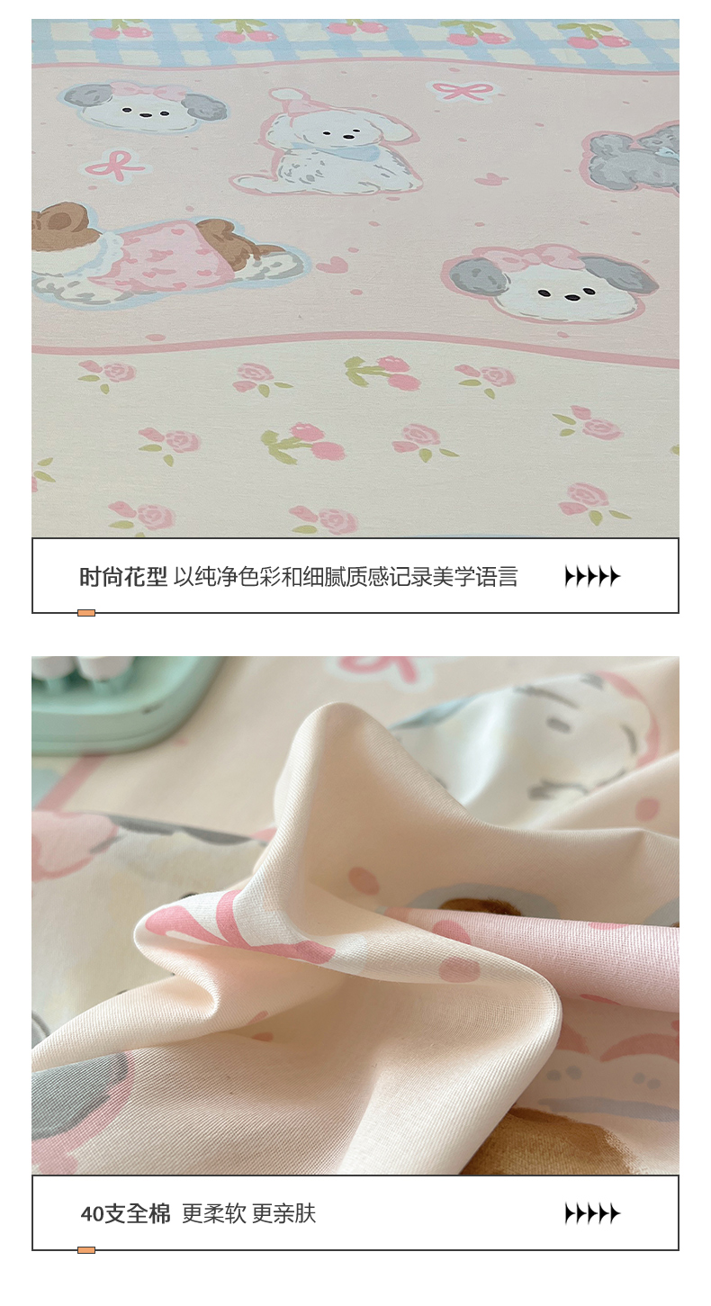 (总)六巷胡同 2025新款 INS减龄可爱风卡通全棉四件套第五系(森林音乐会系列),波点嘟嘟猫,点点面包犬,调皮蔷薇狗,哈喽泡芙猫,蓝格插画犬,森林音乐会