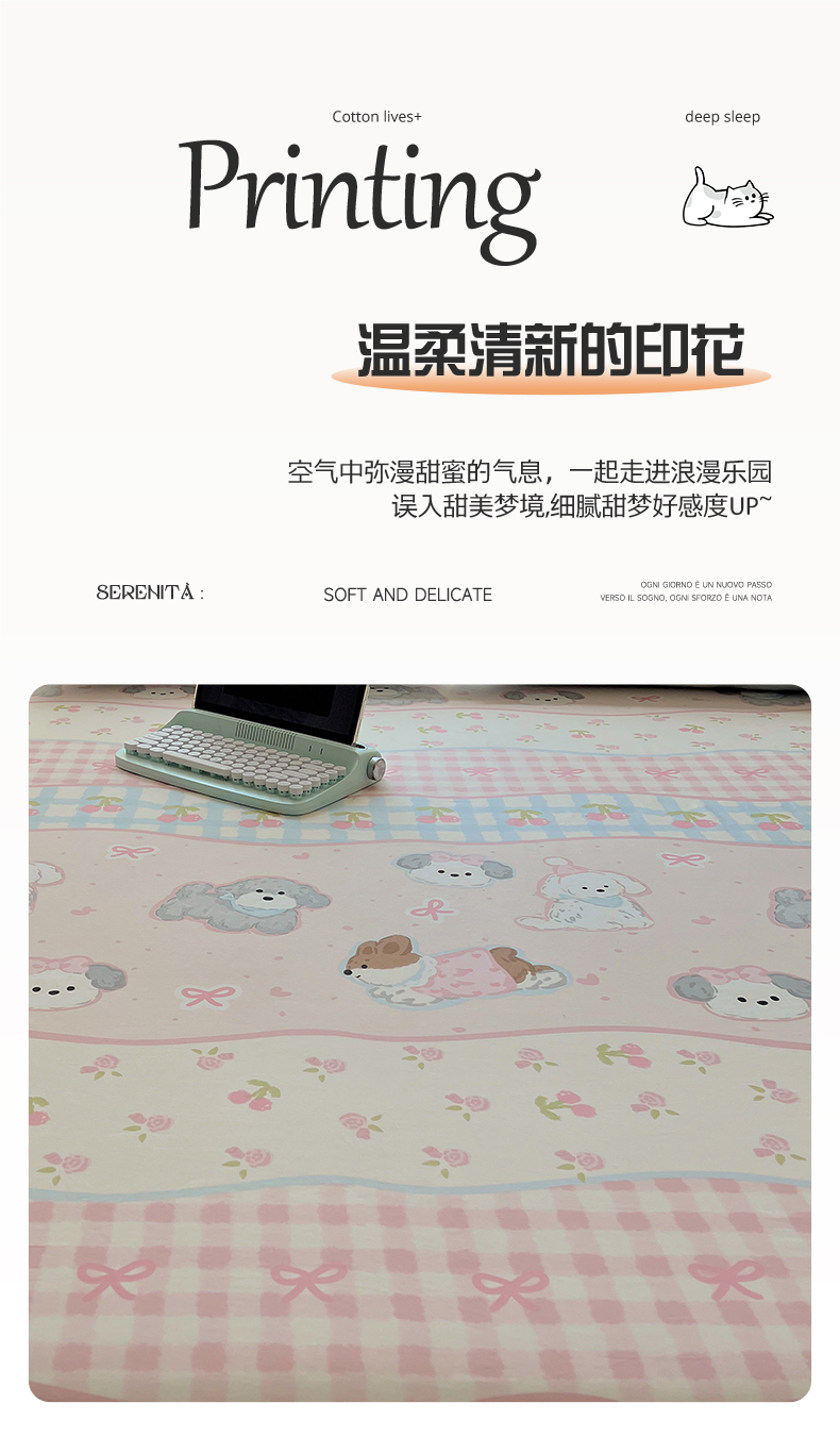 (总)六巷胡同 2025新款INS童趣可爱风卡通全棉四件套-第四系,彩虹甜筒猫,草莓害羞喵,粉格元气猫,咖格樱桃狗,蓝格嗨皮狗,圣诞麋鹿狗,仙人掌粉象,熊熊猫咪崽