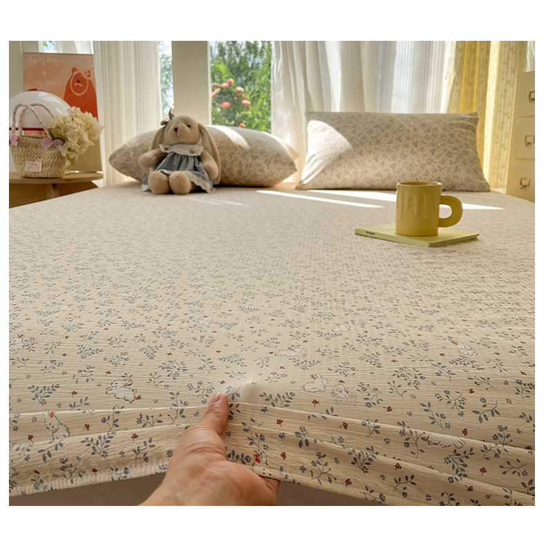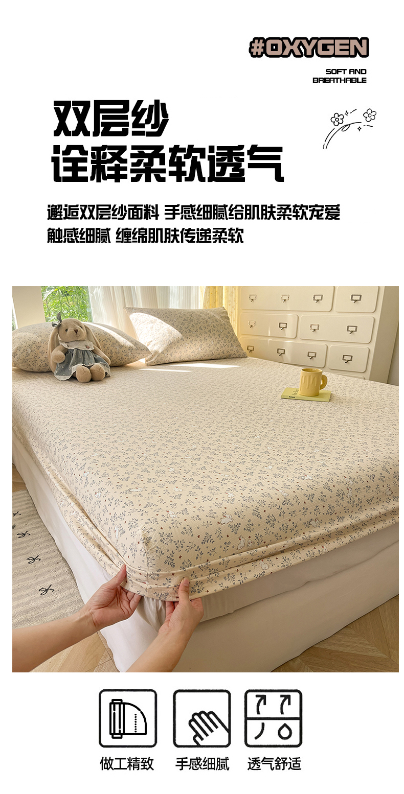 沐芷 2026 【提供买家秀】双层纱A类床笠单件/床笠三件套 床笠款床罩床垫保护套罩 花园兔