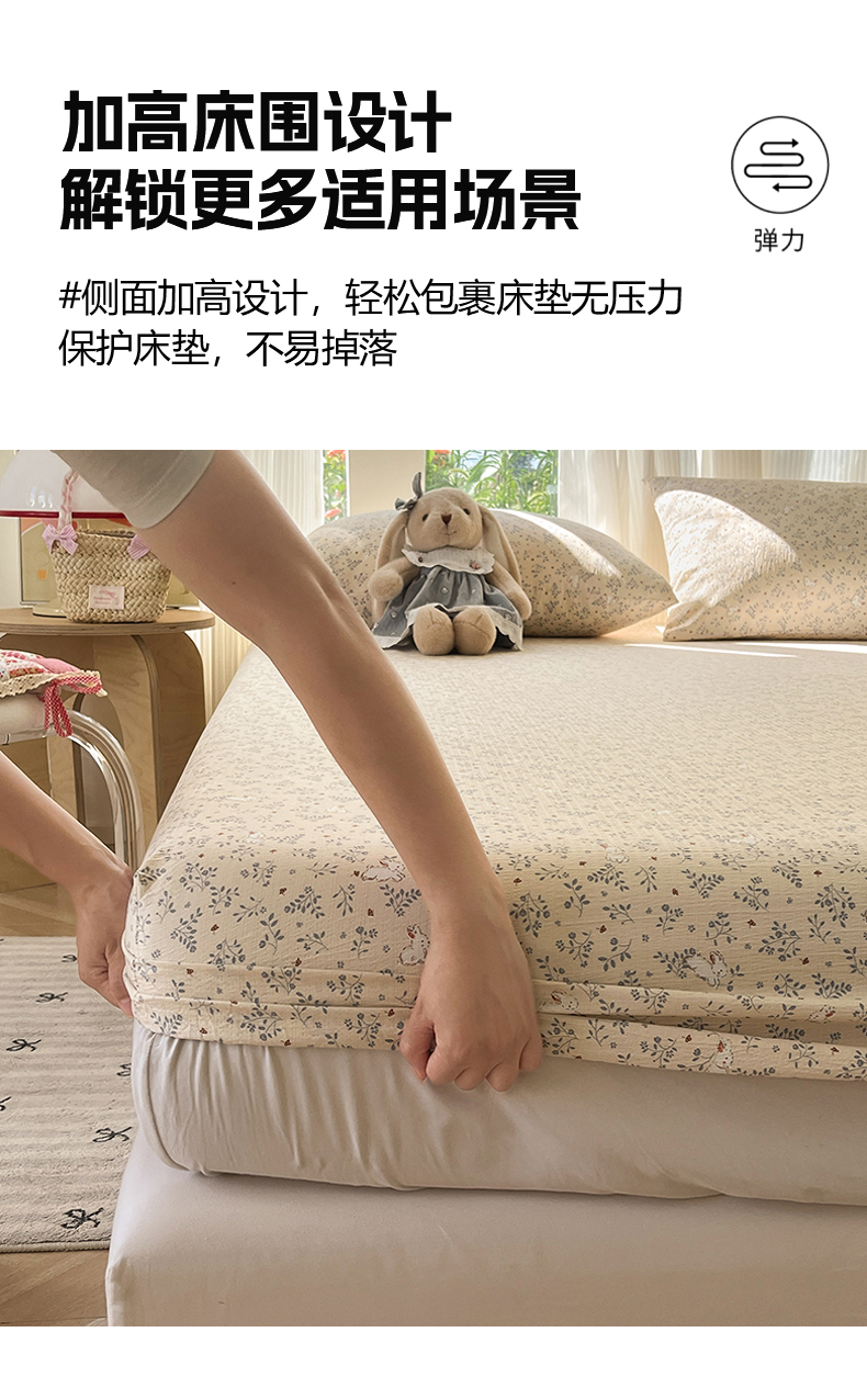 • 91家纺网 家纺一手货源 找家纺 沐芷 2026 【提供买家秀】双层纱A类床笠单件/床笠三件套  床笠款床罩床垫保护套罩 花园兔