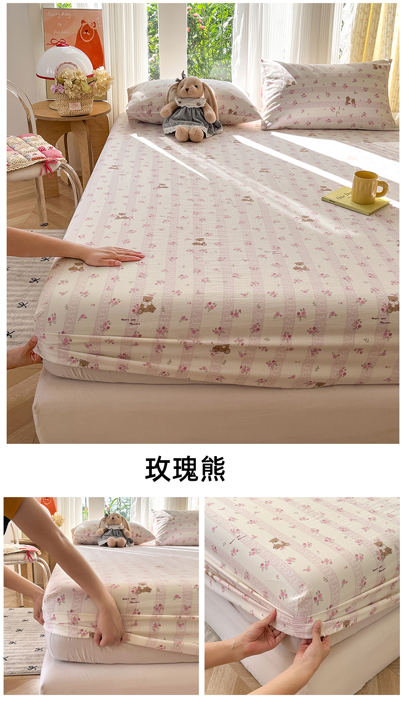 (总)沐芷 2026 【提供买家秀】古法水洗仿棉床笠席梦思床罩床垫防滑床套罩床笠三件套,萌物,甜梦糖豆,巴黎甜心,白月光,豹纹音乐,波点汪语,彩虹跳跳糖,漫游小鱼,萌犬游记,迷你格-黄,迷你格-蓝,奶味圆饼,暖意小熊,星仔,樱桃物语,组合图