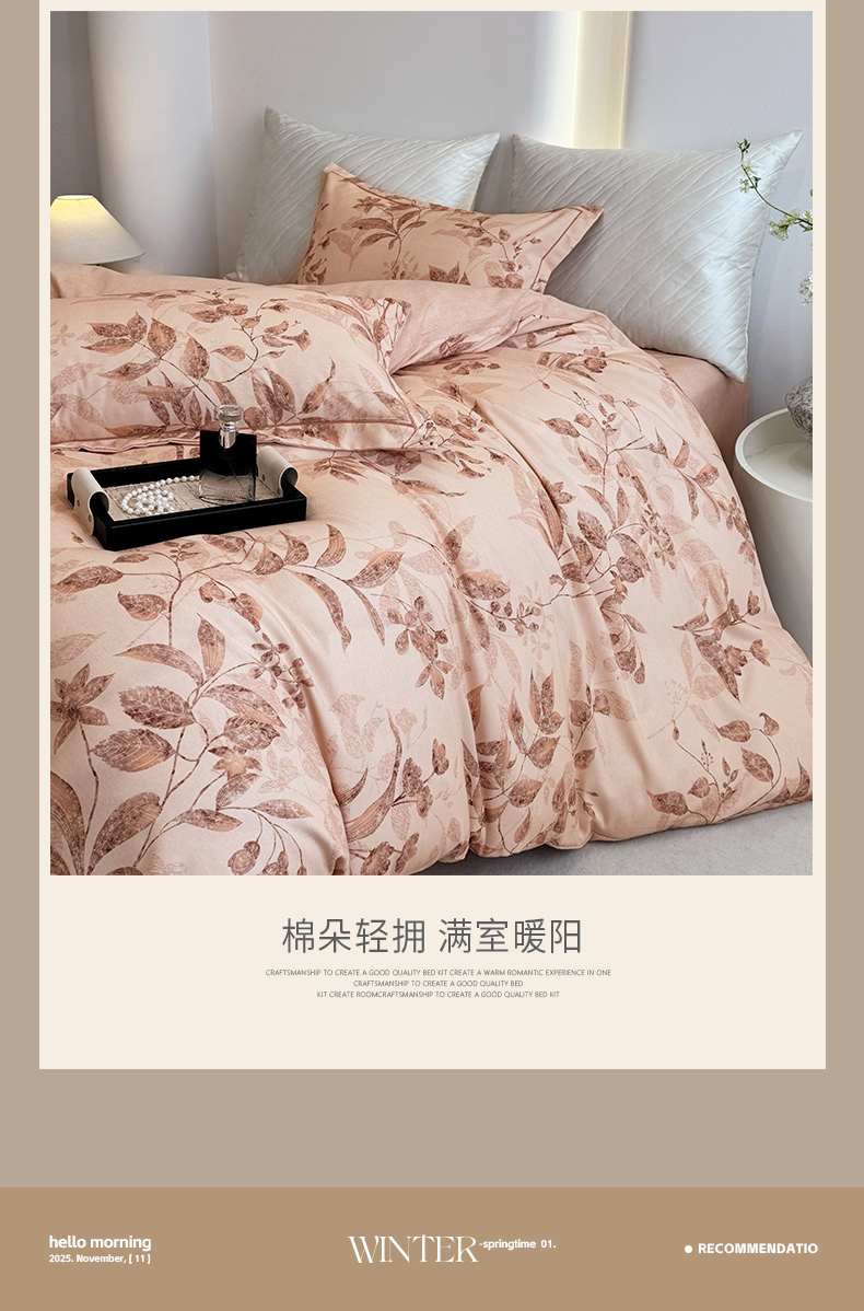 (总)遇安家纺 2025新款加厚全棉生态磨毛印花四件套,锦簇,格洛尔,毛里斯,玫昭,四叶草,叶影,叶韵,艺海