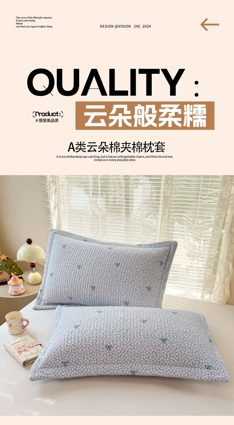 • 91家纺网 家纺一手货源 找家纺 梦舒羽 2025新款A类云朵棉夹棉枕套宿舍单人一只装枕芯内胆套-单人枕套 花屿轻梦(压线夹棉)
