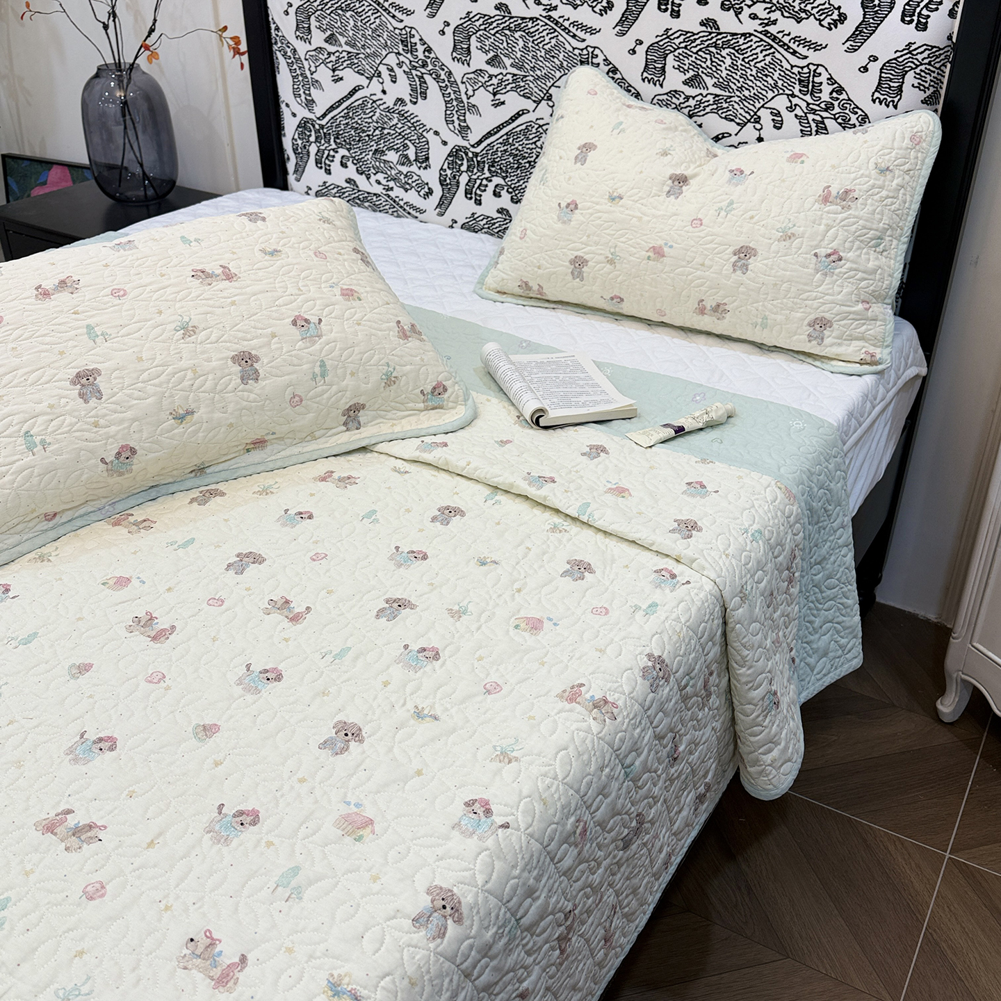 (总)床盖工厂店 2025新款双面全棉小包边床盖三件套,彩绘汪汪,春游手记,淡梨语,果味时光,奶霜啵啵狗,手帐日记,丛草集,莓莓柯基,月免花园