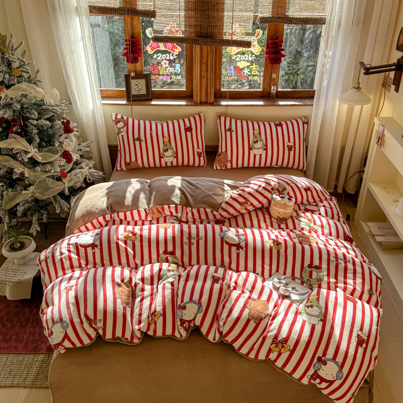 商品名称:桃喜 2026新年限定高克重猫咪系列四件套 新年猫咪(牛奶绒)