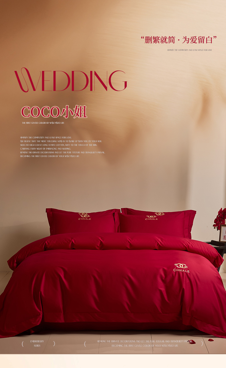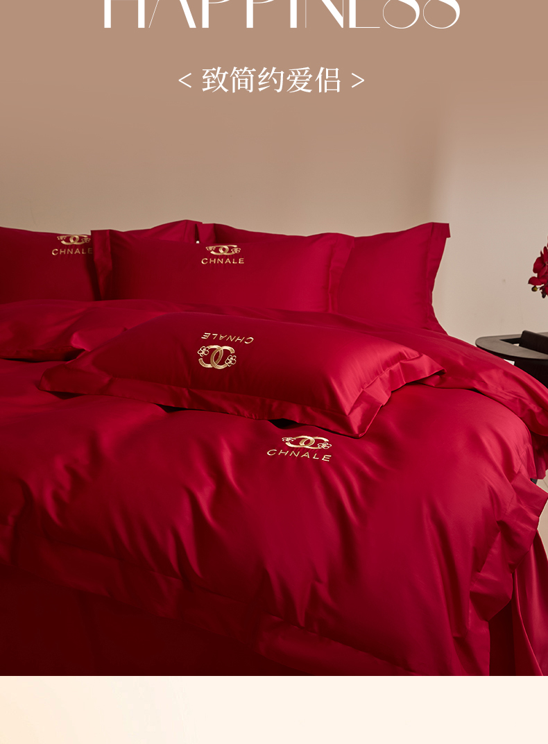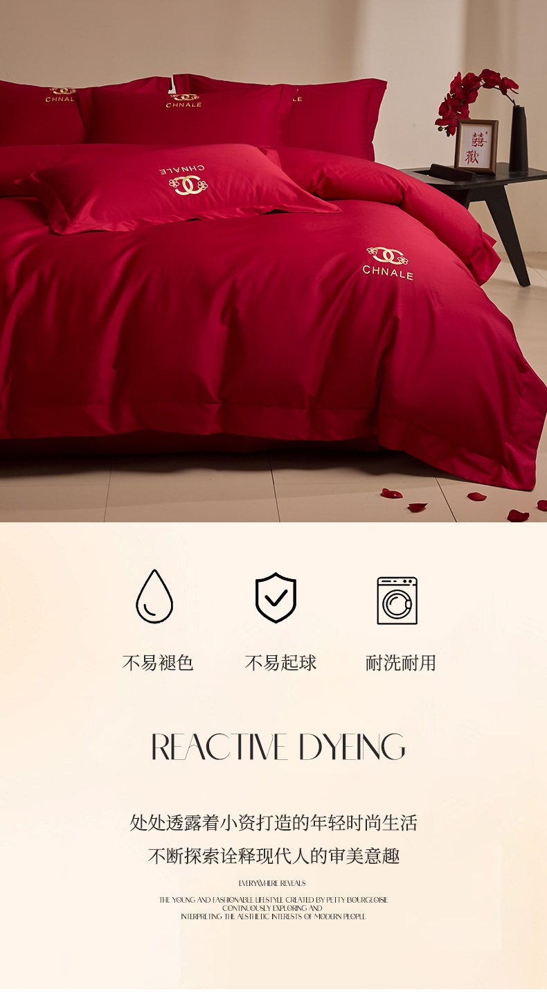 商品名称:(总)苏源家居 2026 新款简单婚庆大红小logo刺绣结婚四件套