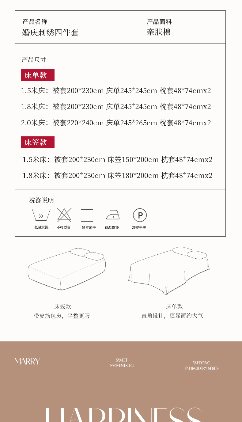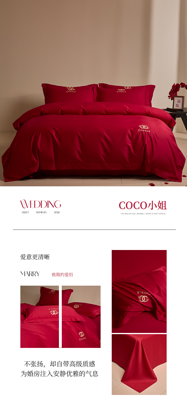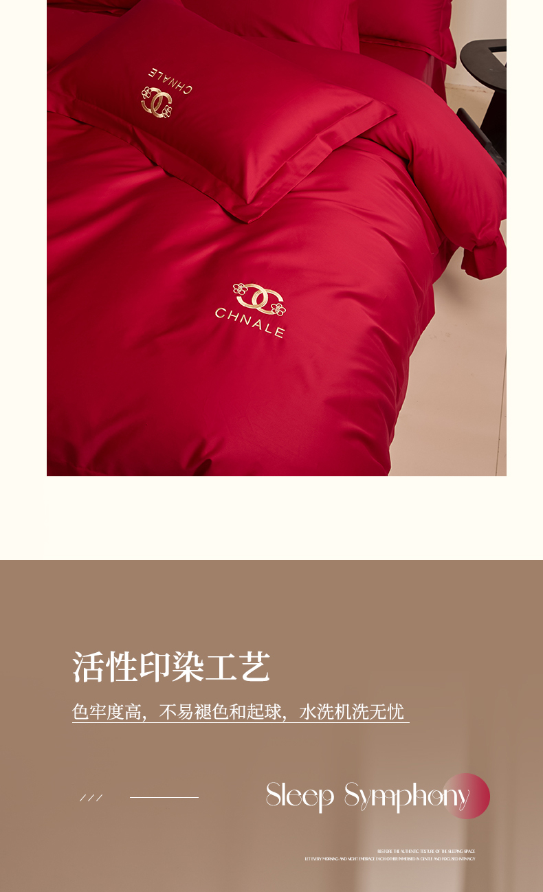 商品名称:(总)苏源家居 2026 新款简单婚庆大红小logo刺绣结婚四件套