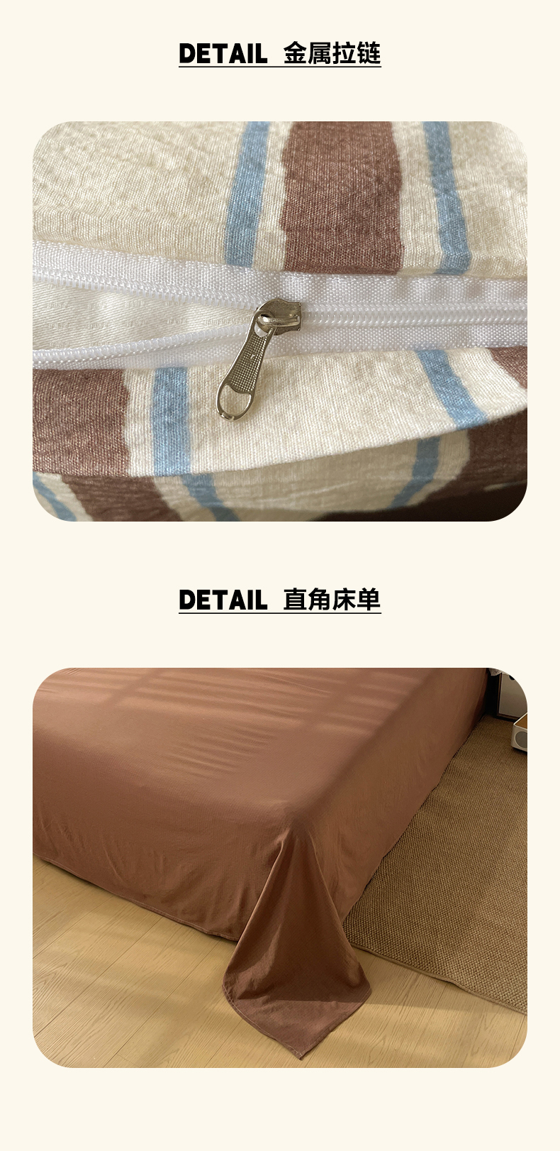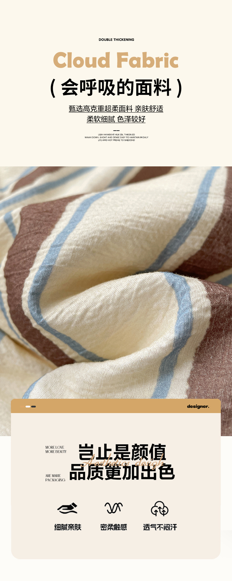 当前位置: 91家纺网 > 商品网购 > 床品套件 > 四件套 > 双层纱四件套 > 海岛哥哥 2026新款双层纱格条系列四件套 奶油蓝棕条
