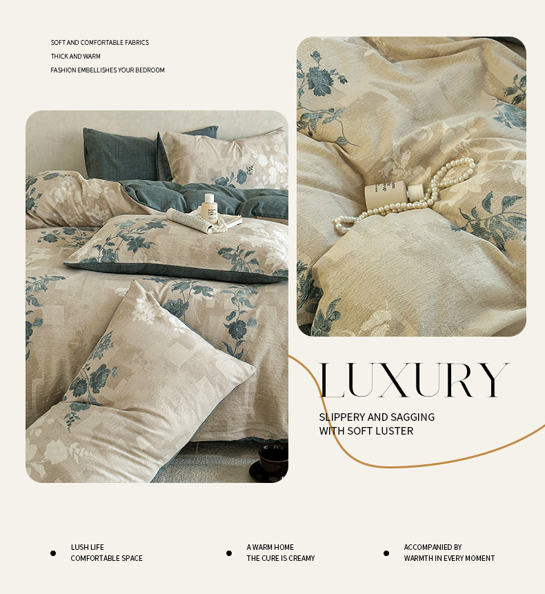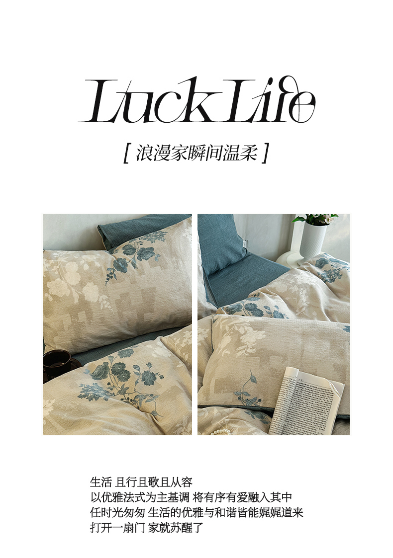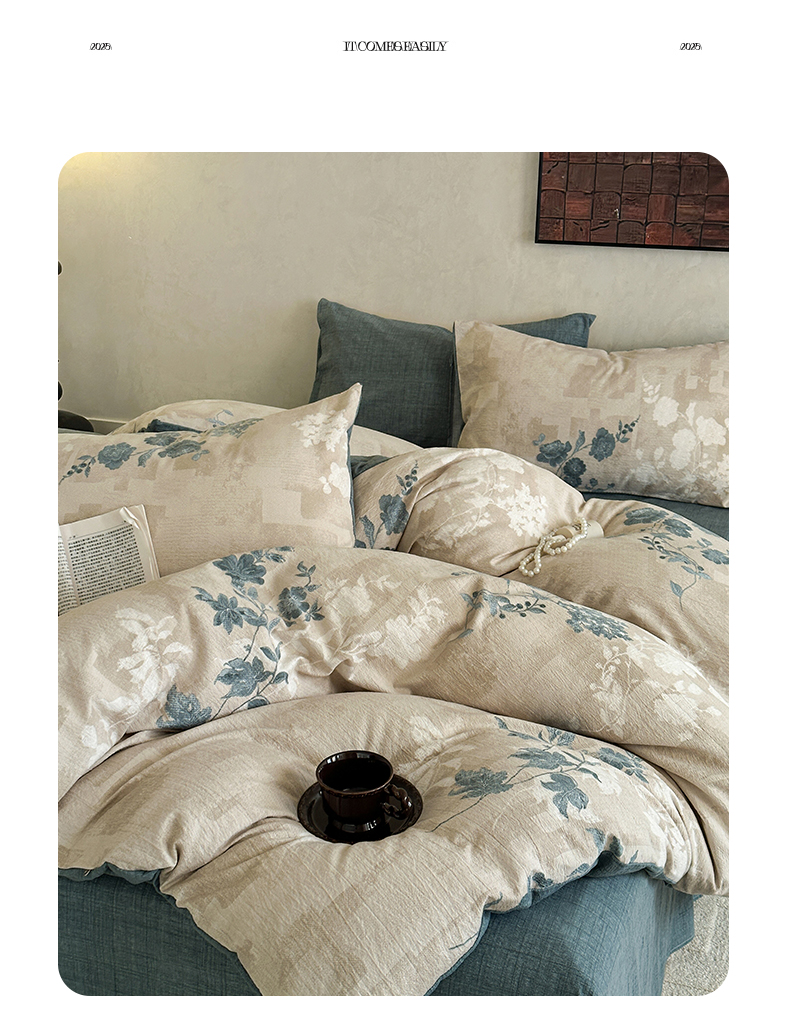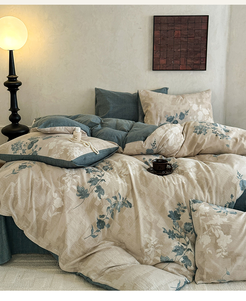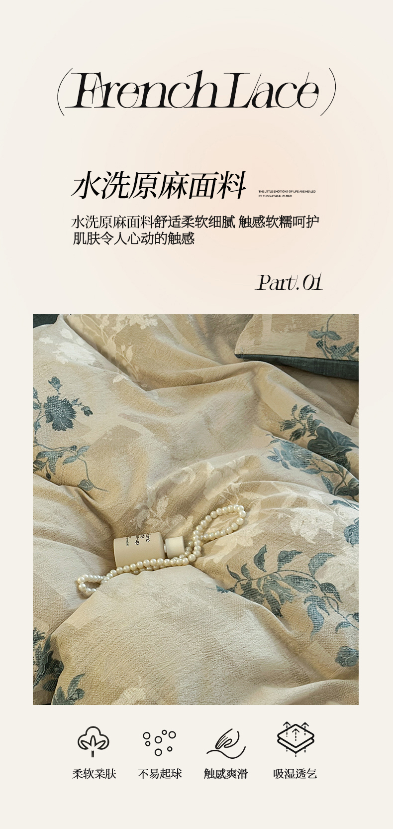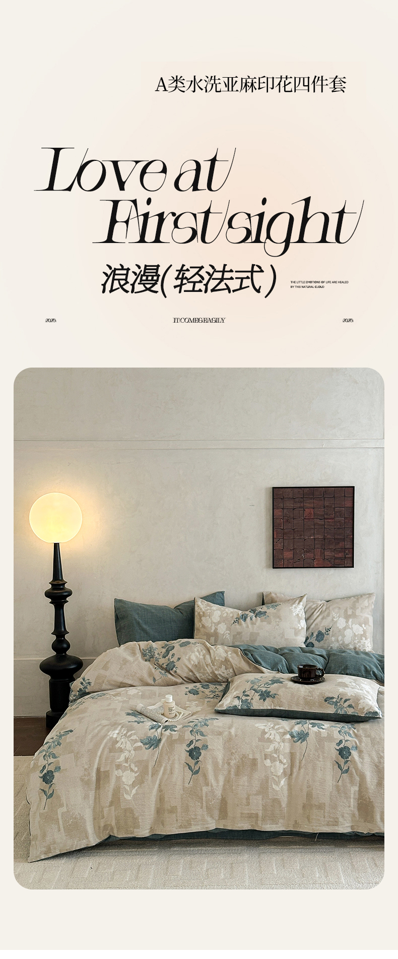 当前位置: 91家纺网 > 商品网购 > 床品套件 > 四件套 > 水洗棉四件套 > 桔禾家纺 2026新款提花高克重原麻复古水洗亚麻皱皱纱印花四件套 锦韵