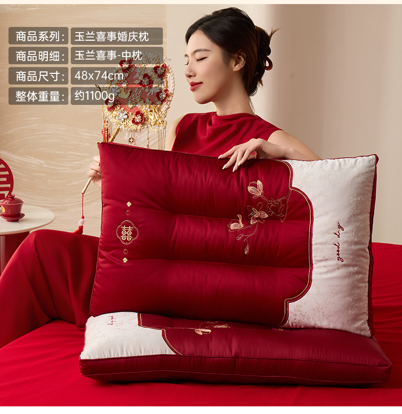 当前位置: 91家纺网 > 商品网购 > 枕头/枕芯/保健枕/颈椎枕 > 枕头枕芯 > 昕科 2026新款玉兰喜事婚庆枕-大红婚庆喜庆枕芯刺绣结婚枕头 玉兰喜事-高枕/一只装