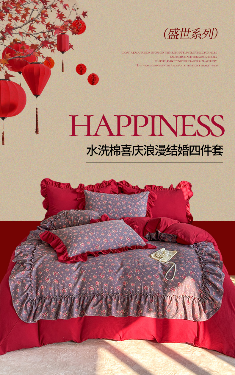 • 91家纺网 家纺一手货源 找家纺 (总)贝凯瑞 2026仿棉皱皱纱双层纱木棉仿棉水洗棉喜庆浪漫大红四件套-锦绣,锦绣红妆,锦绣良缘,锦绣年华