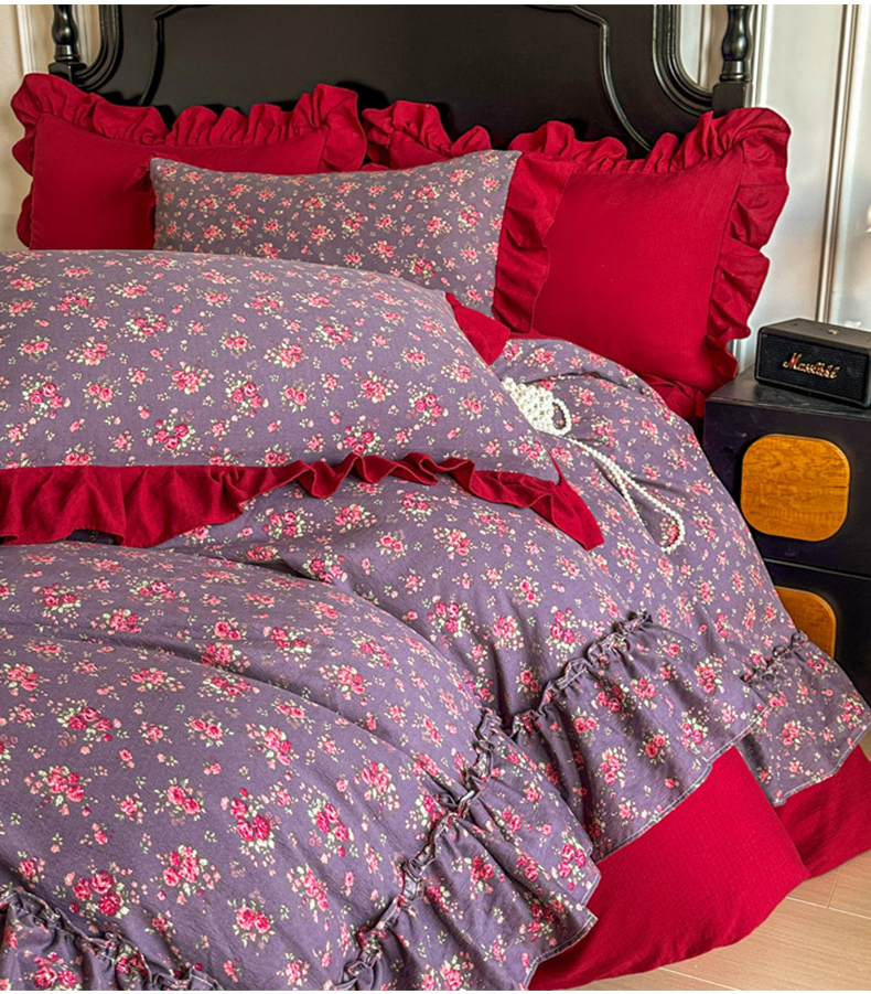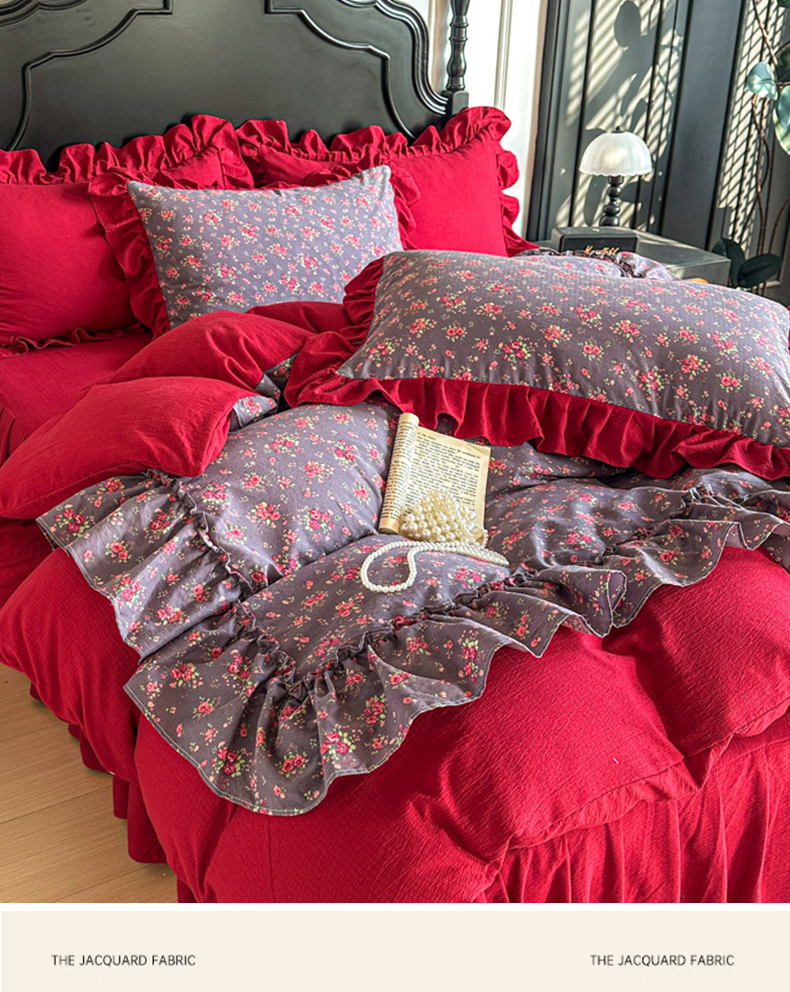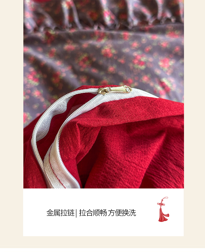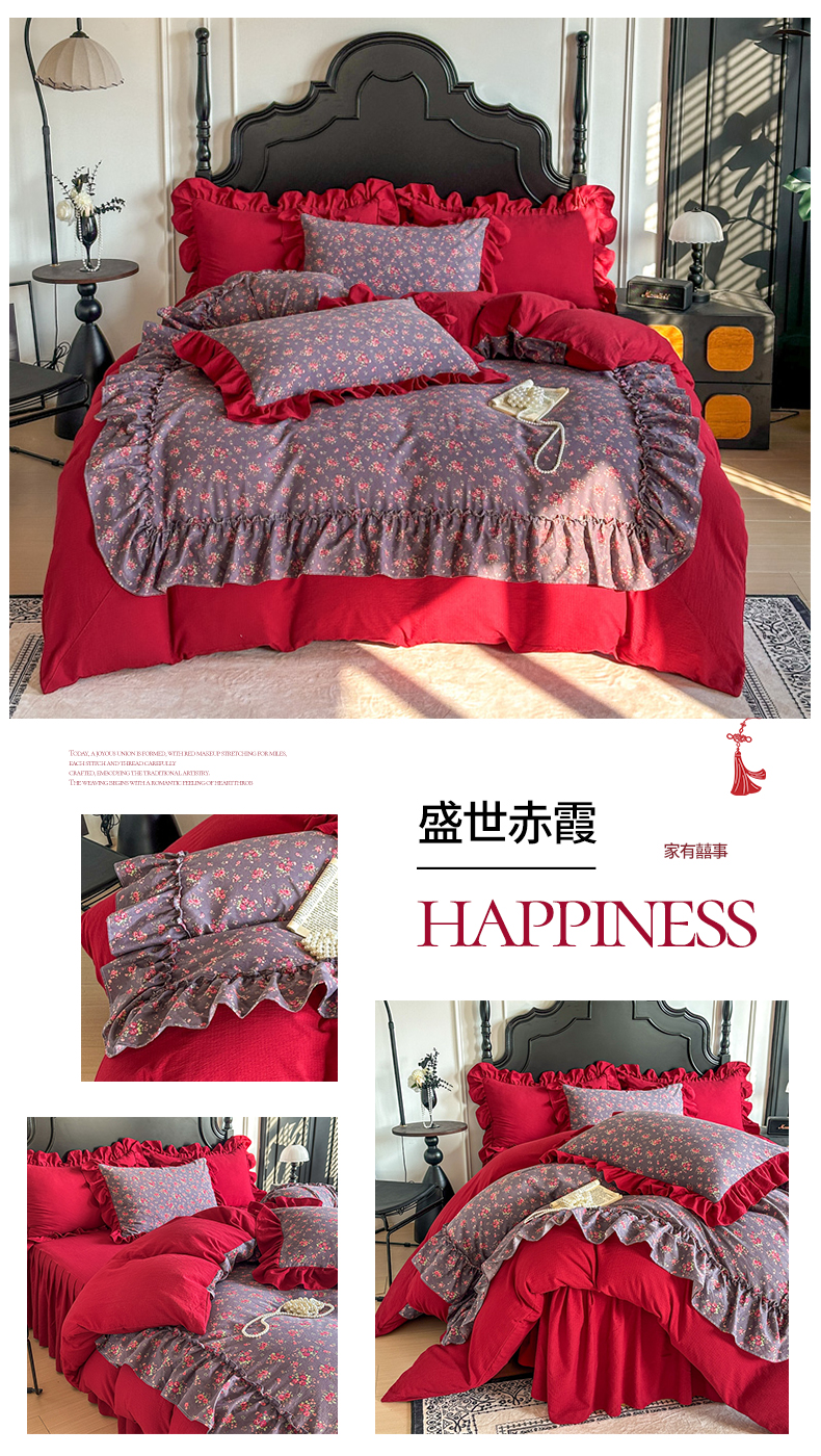 当前位置: 91家纺网 > 商品网购 > 床品套件 > 四件套 > 其它四件套 > 贝凯瑞 2026仿棉皱皱纱双层纱木棉仿棉水洗棉喜庆浪漫大红四件套-盛世 盛世赤霞