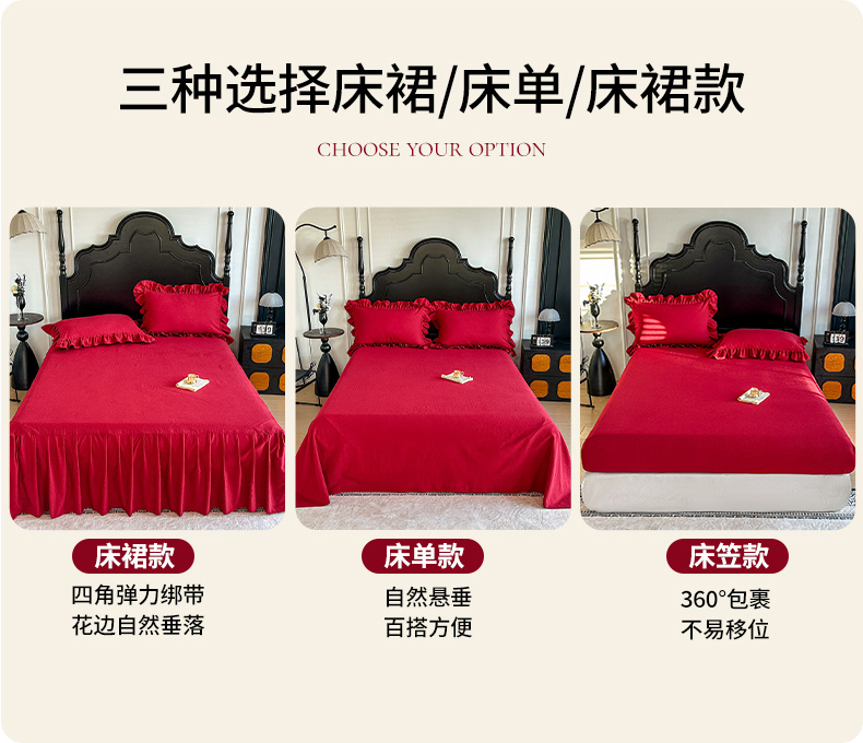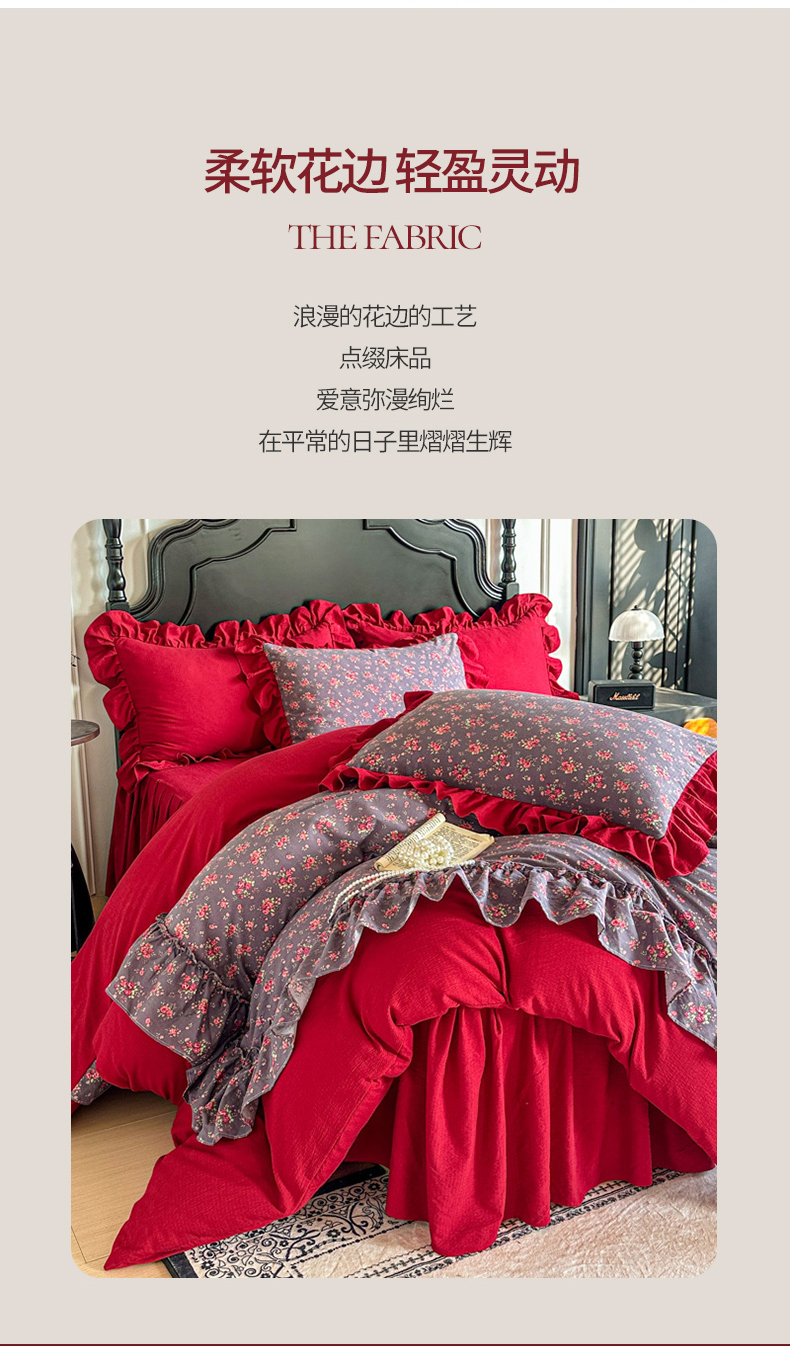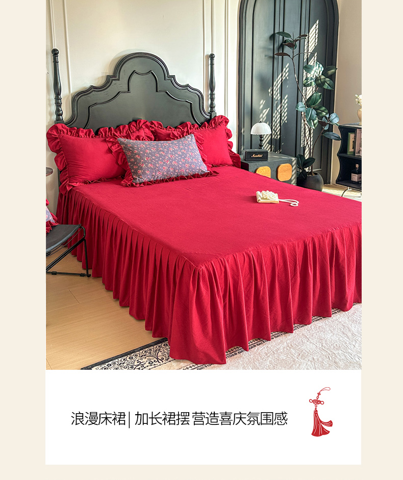 (总)贝凯瑞 2026仿棉皱皱纱双层纱木棉仿棉水洗棉喜庆浪漫大红四件套-红韵,红韵佳期,红韵暖庭,红韵绮梦
