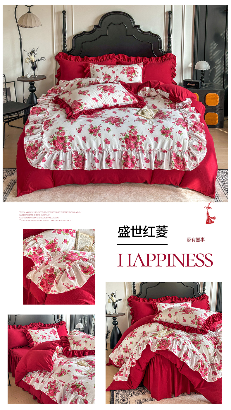 • 91家纺网 家纺一手货源 找家纺 贝凯瑞 2026仿棉皱皱纱双层纱木棉仿棉水洗棉喜庆浪漫大红四件套-盛世 盛世赤霞