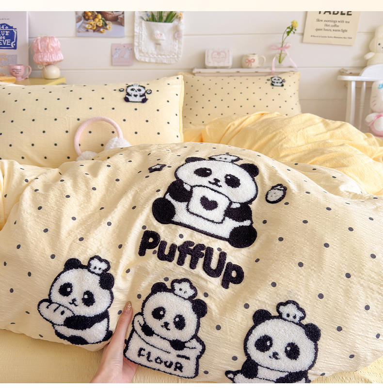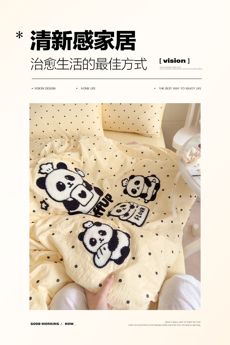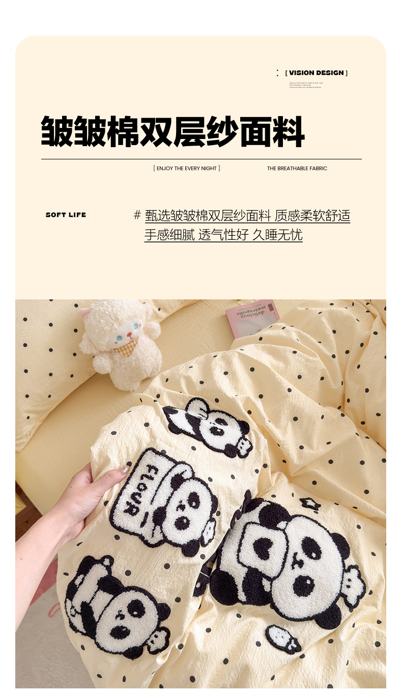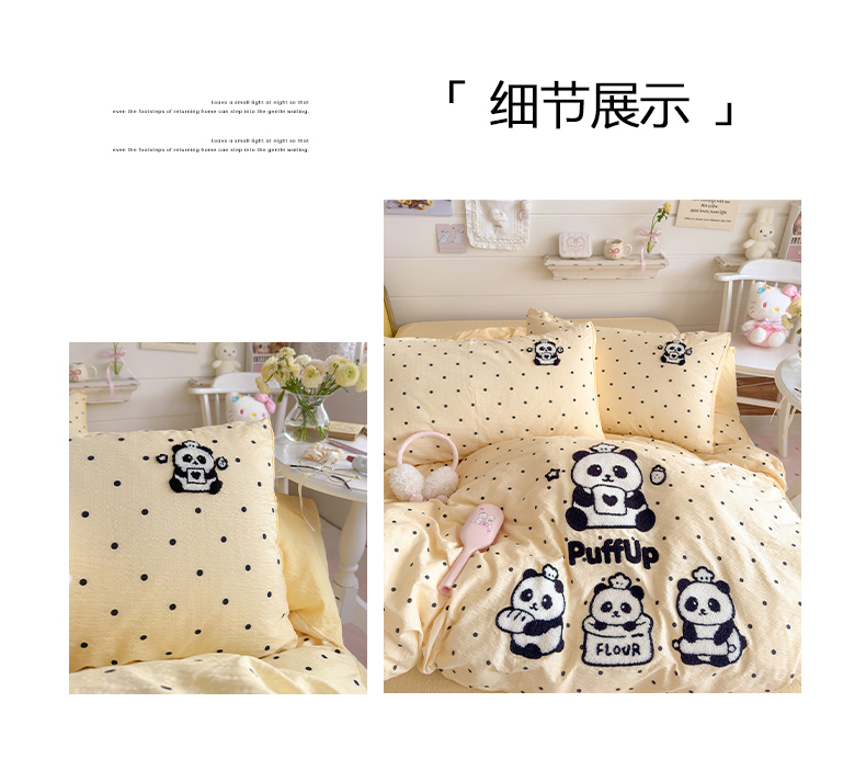 当前位置: 91家纺网 > 商品网购 > 床品套件 > 四件套 > 其它四件套 > 卡斯诺家纺馆 2026新款皱皱棉双层纱毛巾绣四件套(下载文件包含买家秀) 黑白熊猫