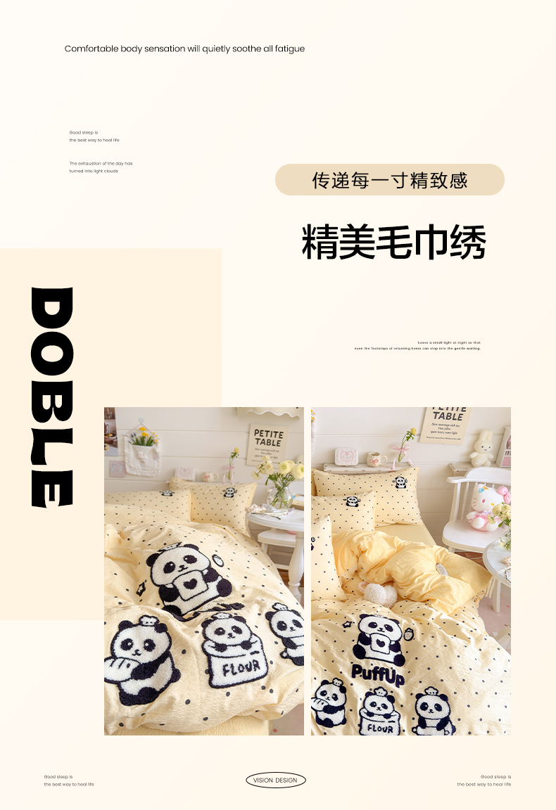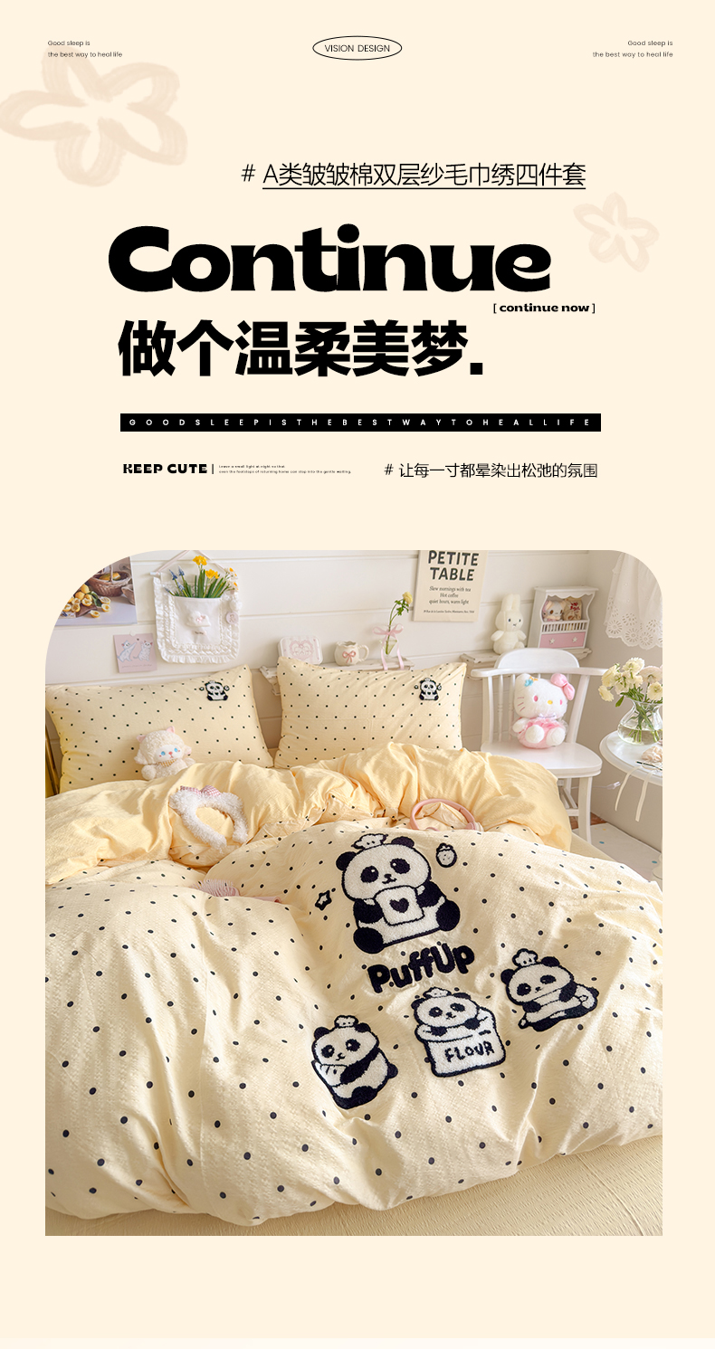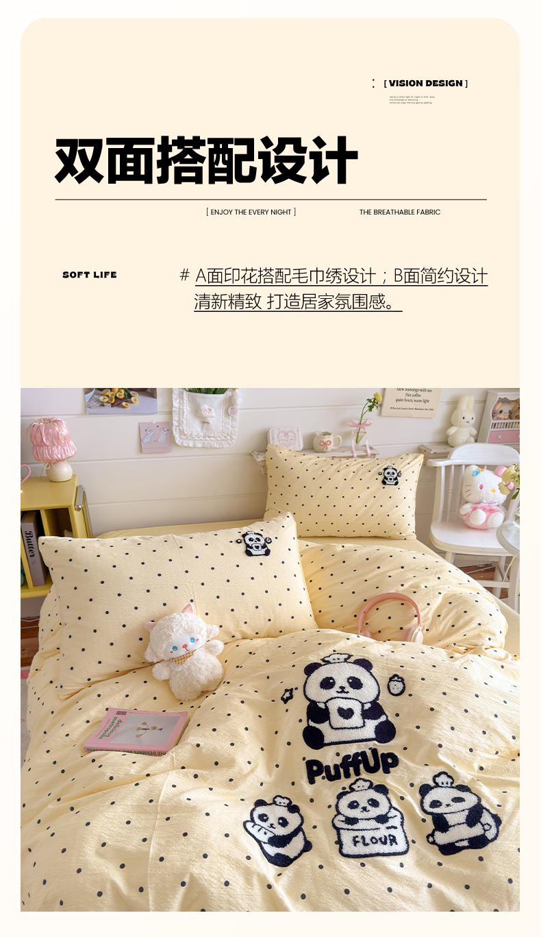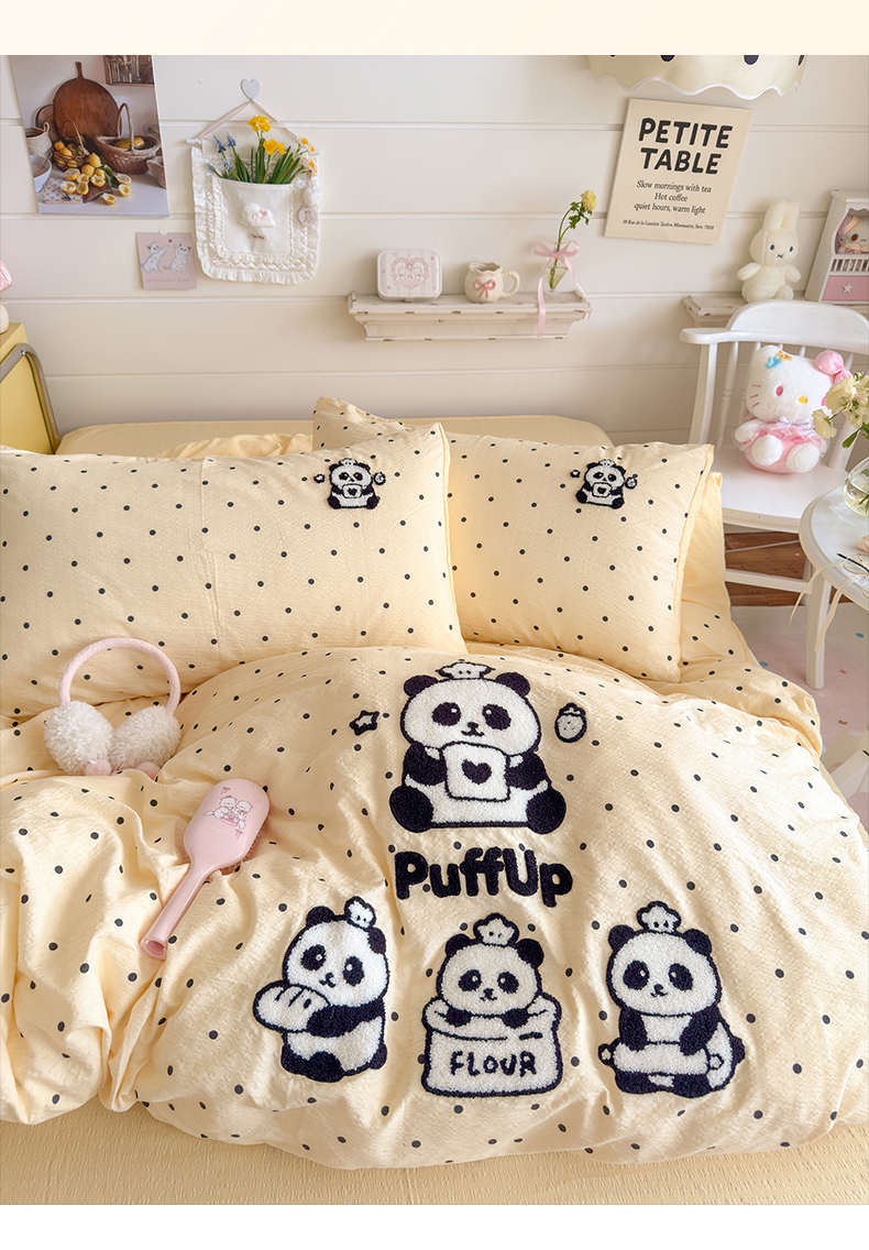 当前位置: 91家纺网 > 商品网购 > 床品套件 > 四件套 > 其它四件套 > 卡斯诺家纺馆 2026新款皱皱棉双层纱毛巾绣四件套(下载文件包含买家秀) 黑白熊猫