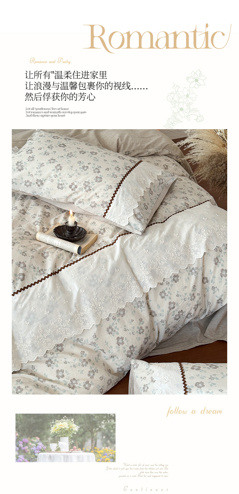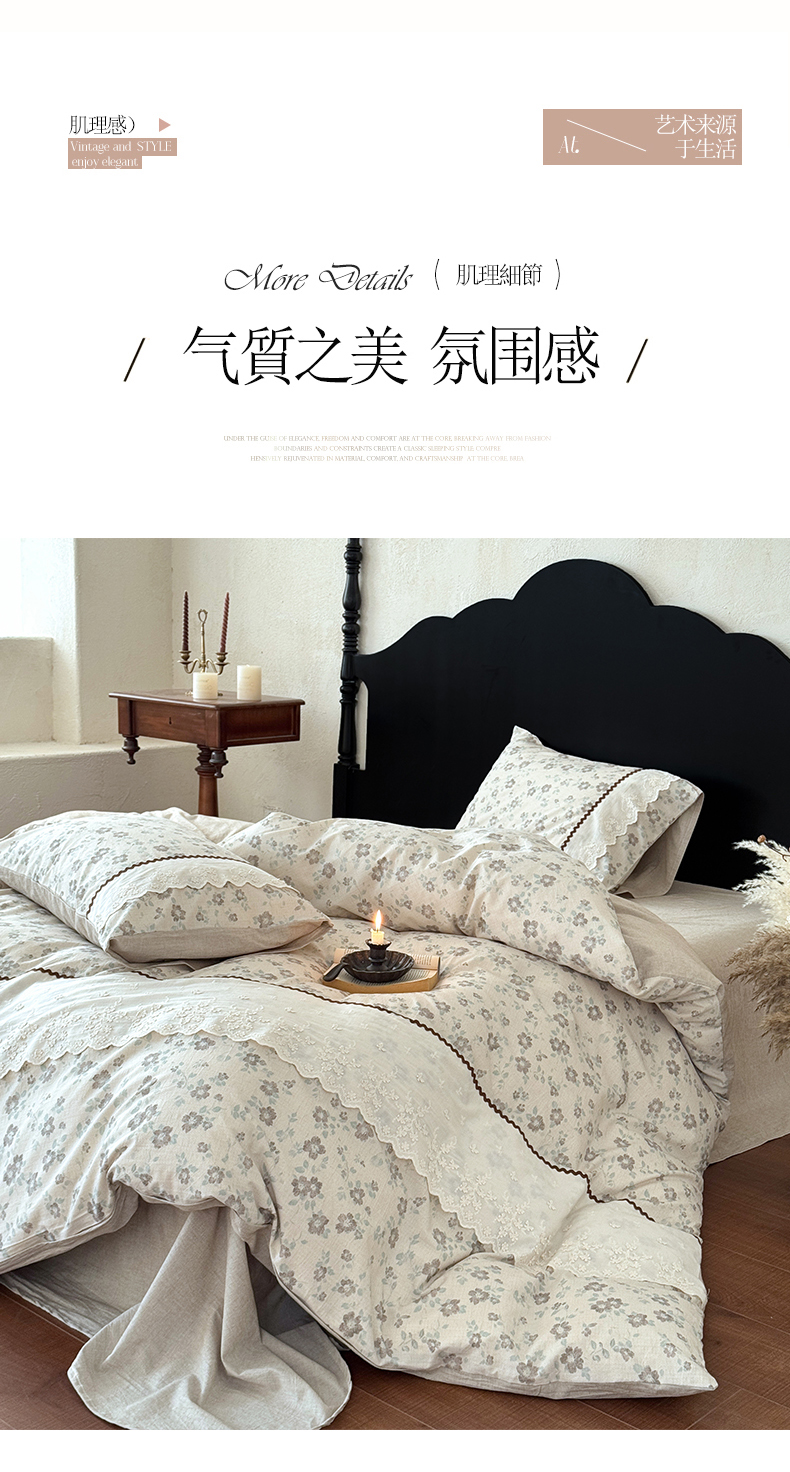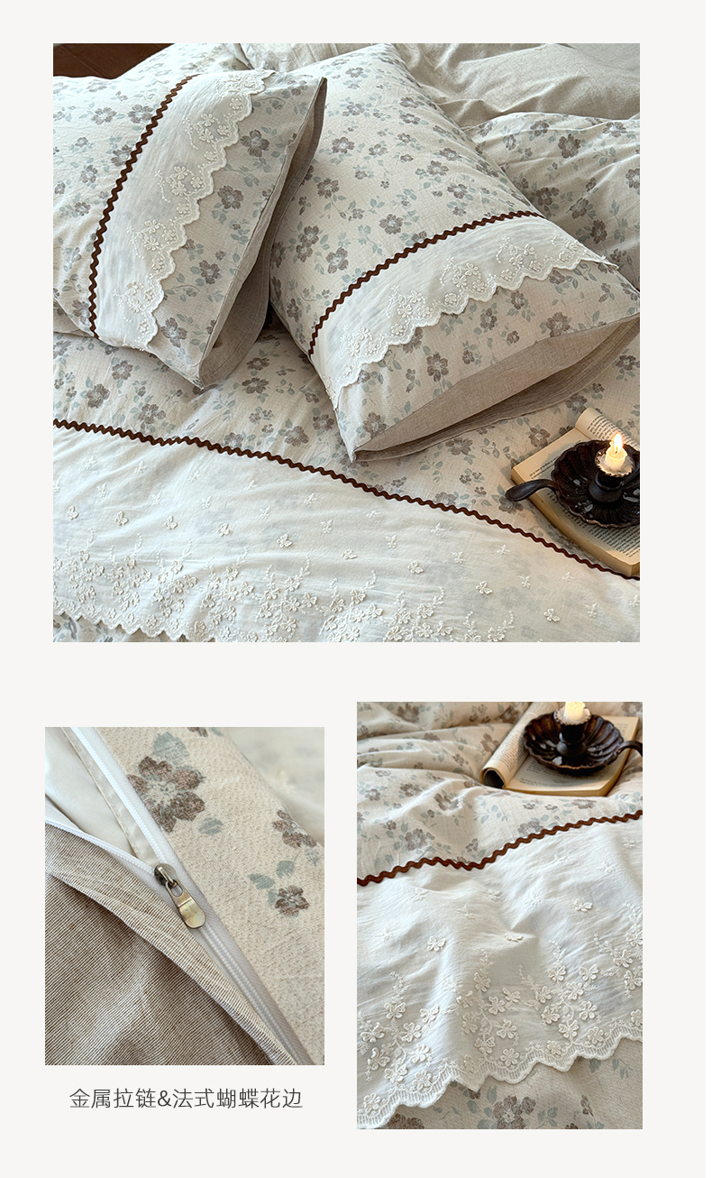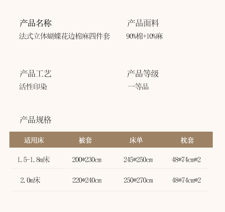 商品名称:(总)淑女公社家纺 2026新款法式立体蝴蝶花边棉麻四件套
