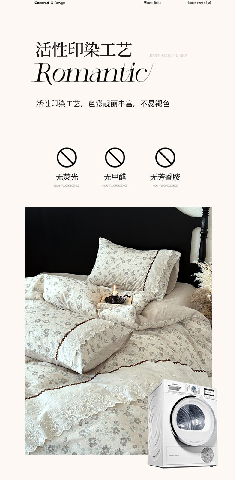 (总)淑女公社 2022新款全棉四件套纯棉少女心事系列直播,初恋粉,奶油黄,春天绿,海洋蓝