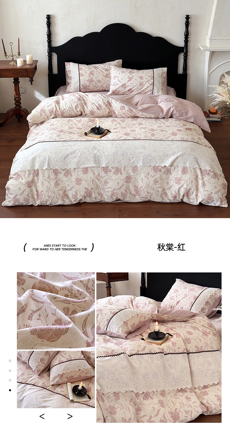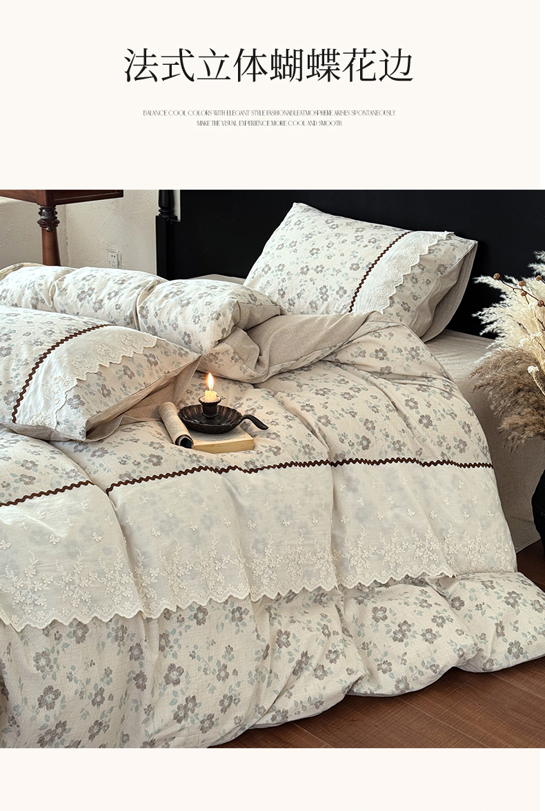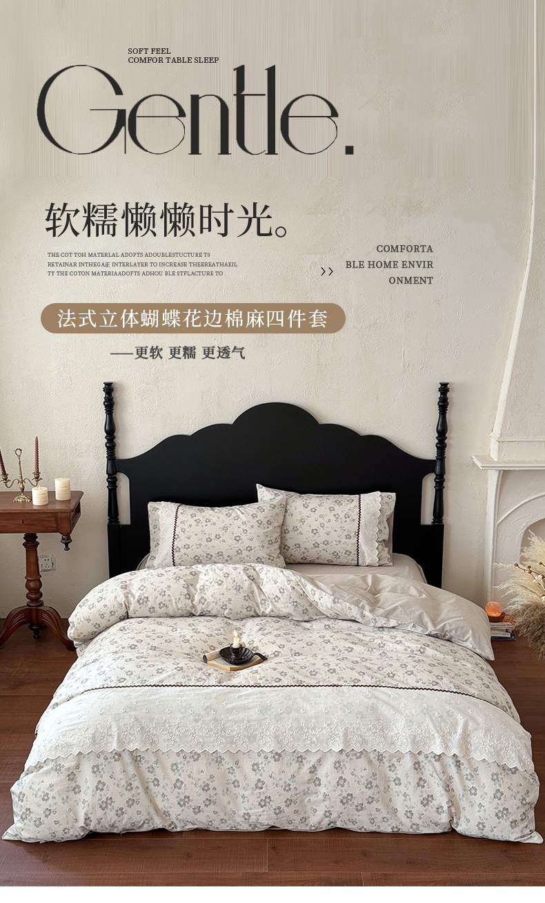 (总)淑女公社家纺 2026新款法式立体蝴蝶花边棉麻四件套