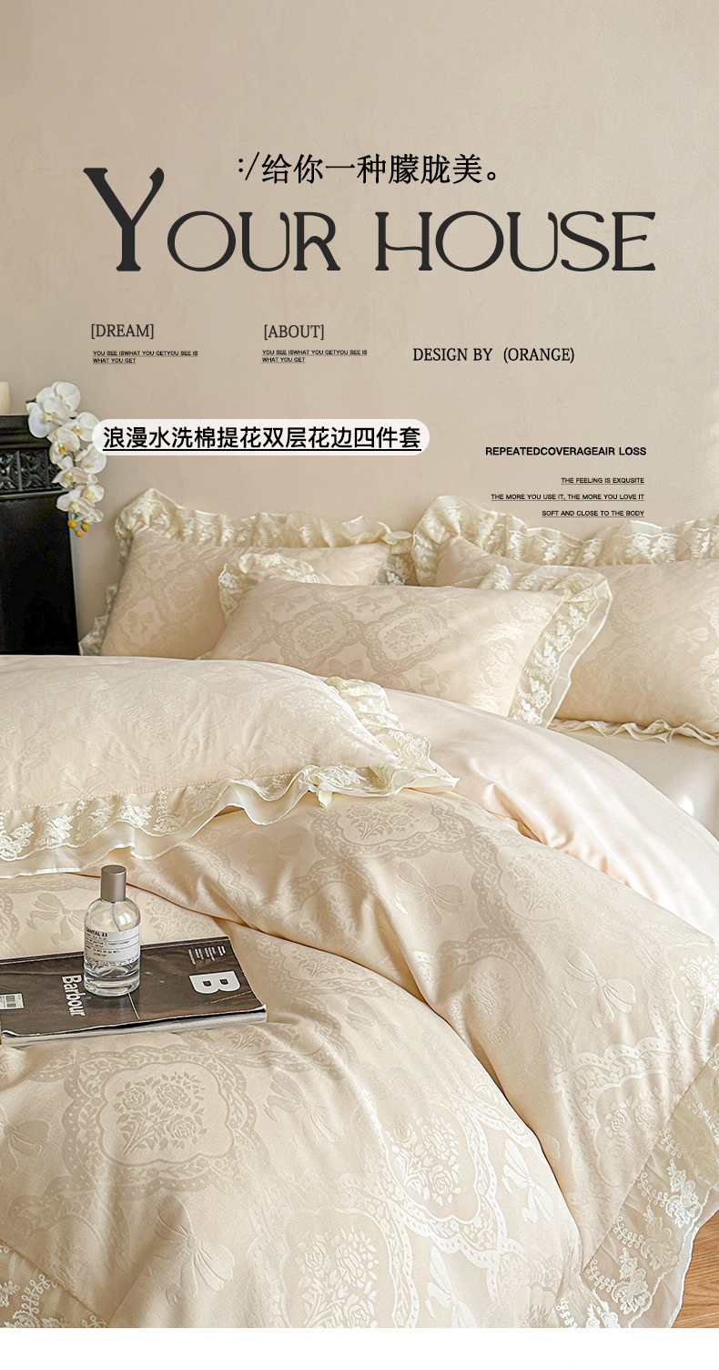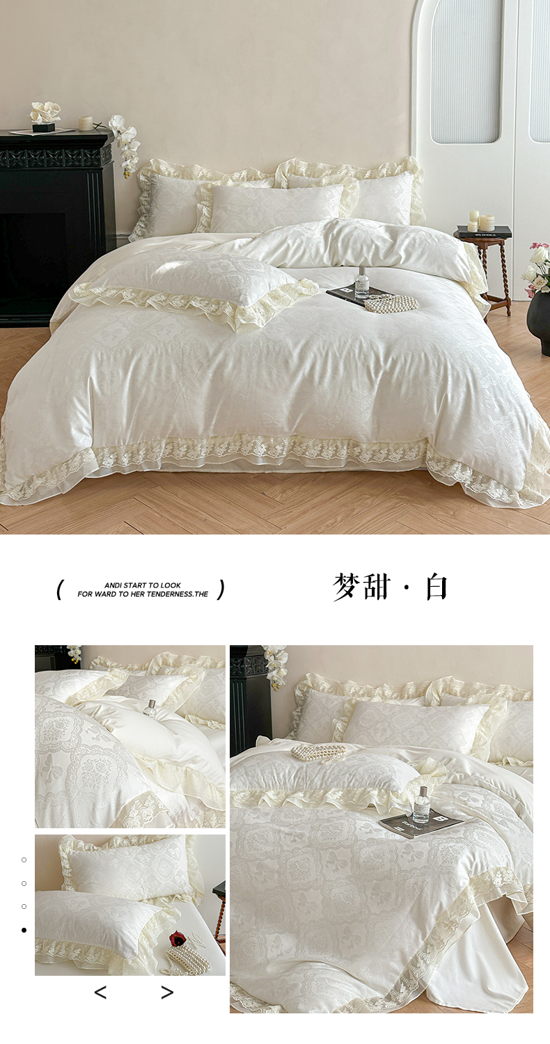 (总)你好美丽 2026新款水洗棉提花双层雪纺花边四件套-梦甜系列