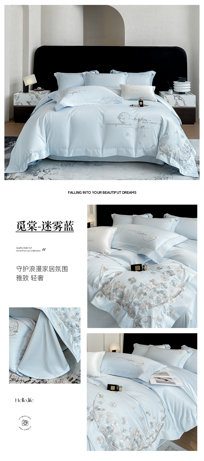 (总)欣宜家纺 2026春夏新款60支A类新疆长绒棉刺绣全棉四件套纯棉床品套件,玛丽-香芋紫,玛丽-梦幻蓝,玛丽-奶白,玛丽-轻奢粉,玛丽-石灰
