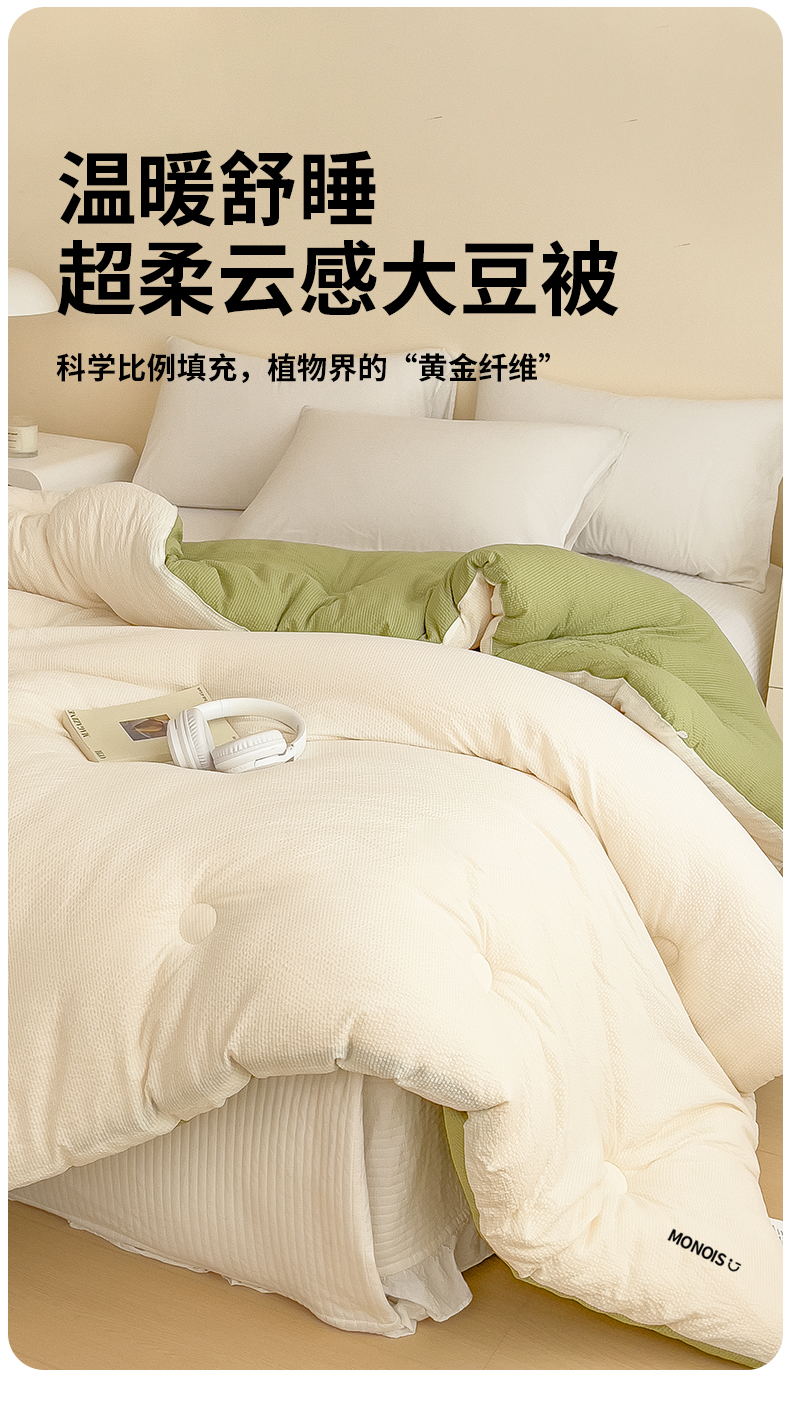 (总)好尚居 2026新款A类双拼贴标大豆被,米拼粉,米拼卡其,米拼绿,米拼蓝,深灰拼浅灰,卡其拼灰