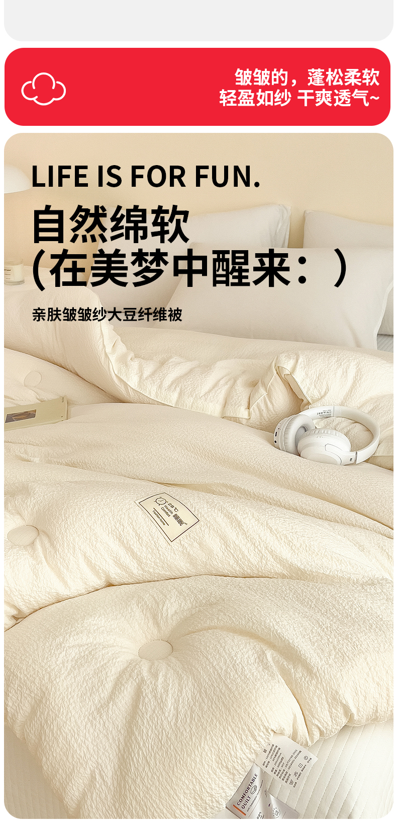 • 91家纺网 家纺一手货源 找家纺 好尚居 2026新款纯色亲肤皱皱纱大豆纤维被被子被芯 玉色