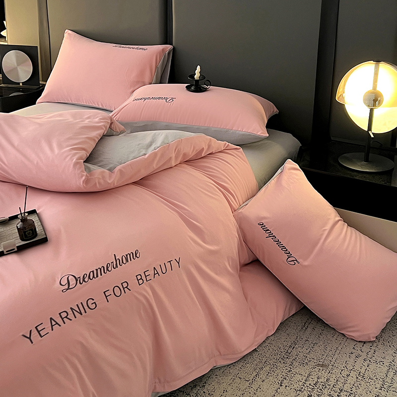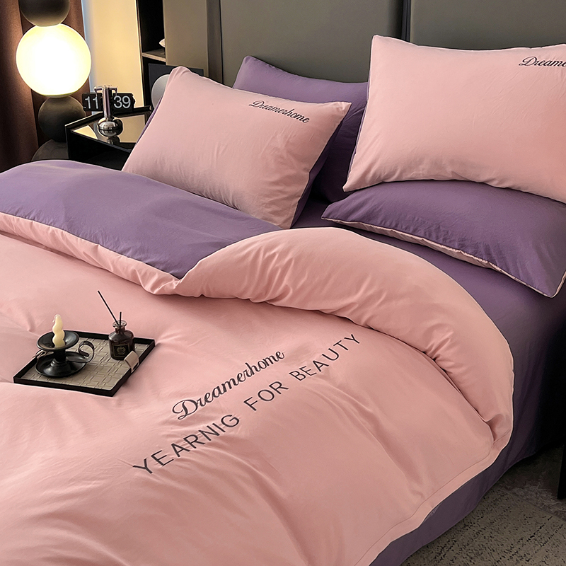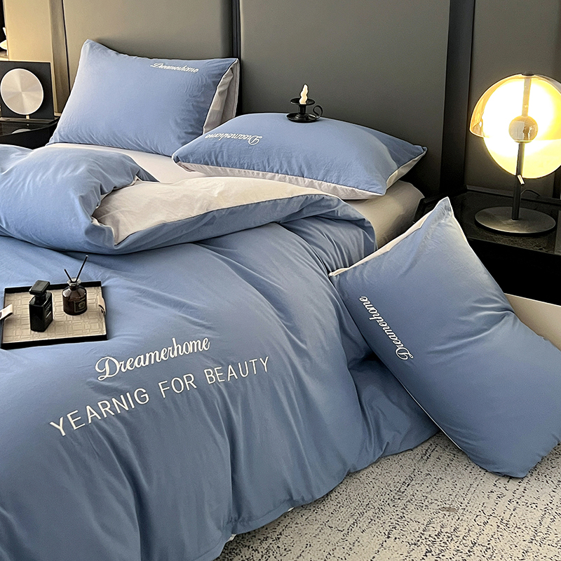(总)鑫利来家纺 2026新款古法仿棉水洗棉刺绣四件套纯色双拼水洗云朵棉磨毛简约字母刺绣四件套,慕斯-宾利兰+山灰,慕斯-繁星蓝+天青,慕斯-海清+奶白,慕斯-海清+香叶粉,慕斯-豆沙+山灰,慕斯-粉+紫,慕斯-奶白+果绿,慕斯-奶白+中灰,慕斯-山灰+中灰
