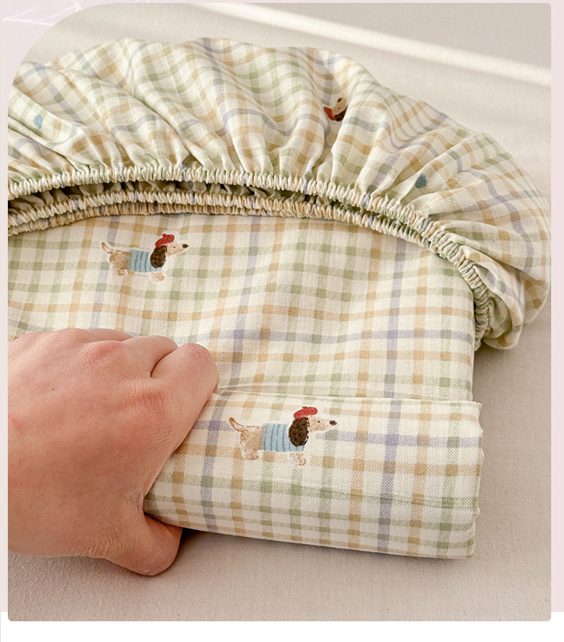 丽美人家纺 2026新款A类柔软双层皱皱纱印花单床笠床笠单件 腊肠狗