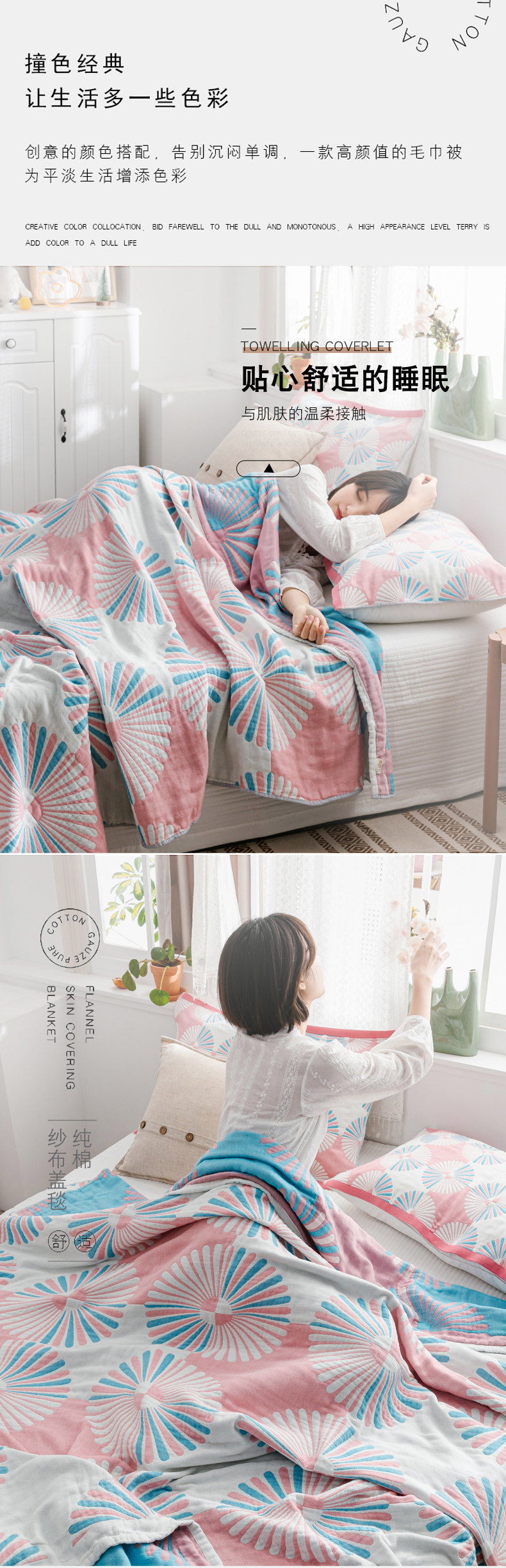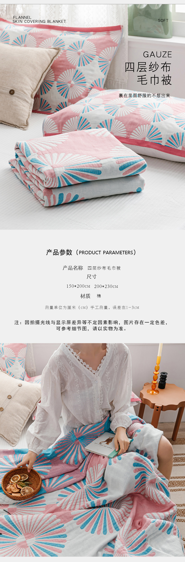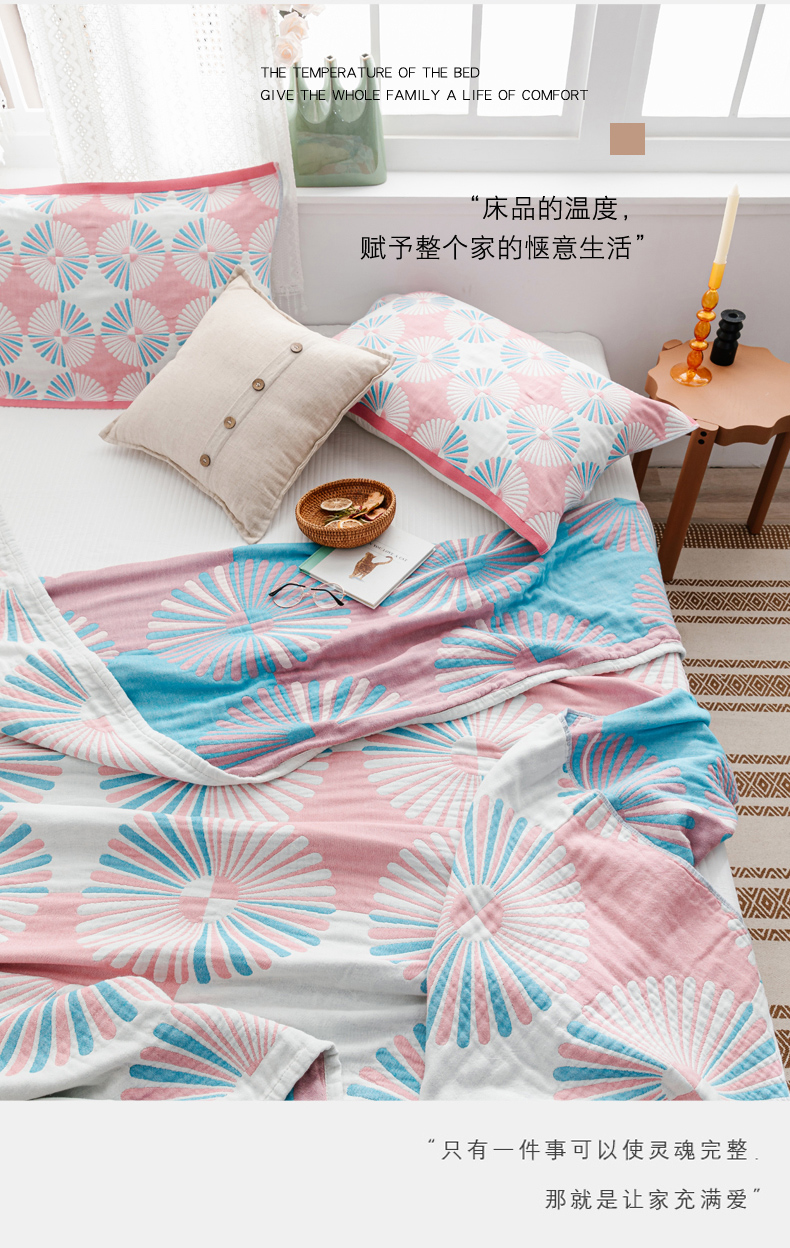 商品名称:朴尔家纺-毛巾被 2026新款波西米亚风全棉四层纱布毛巾被-朴尔经典款常年备货 布尔乔亚-粉
