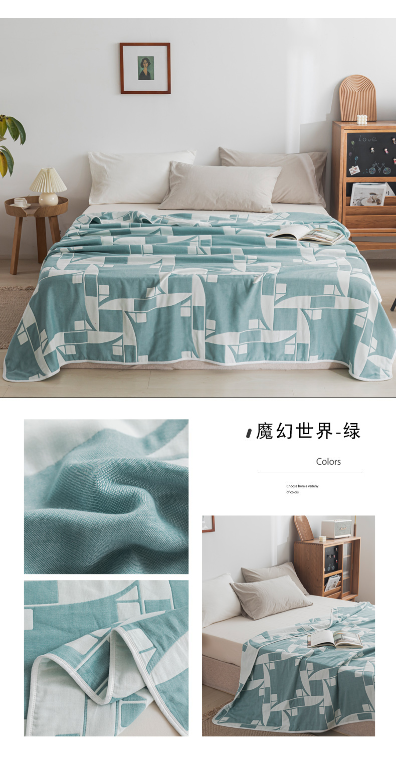 朴尔家纺-毛巾被 2026新款抽象风格六层纱布毛巾被系列-朴尔经典款常年备货 洛丽塔-绿