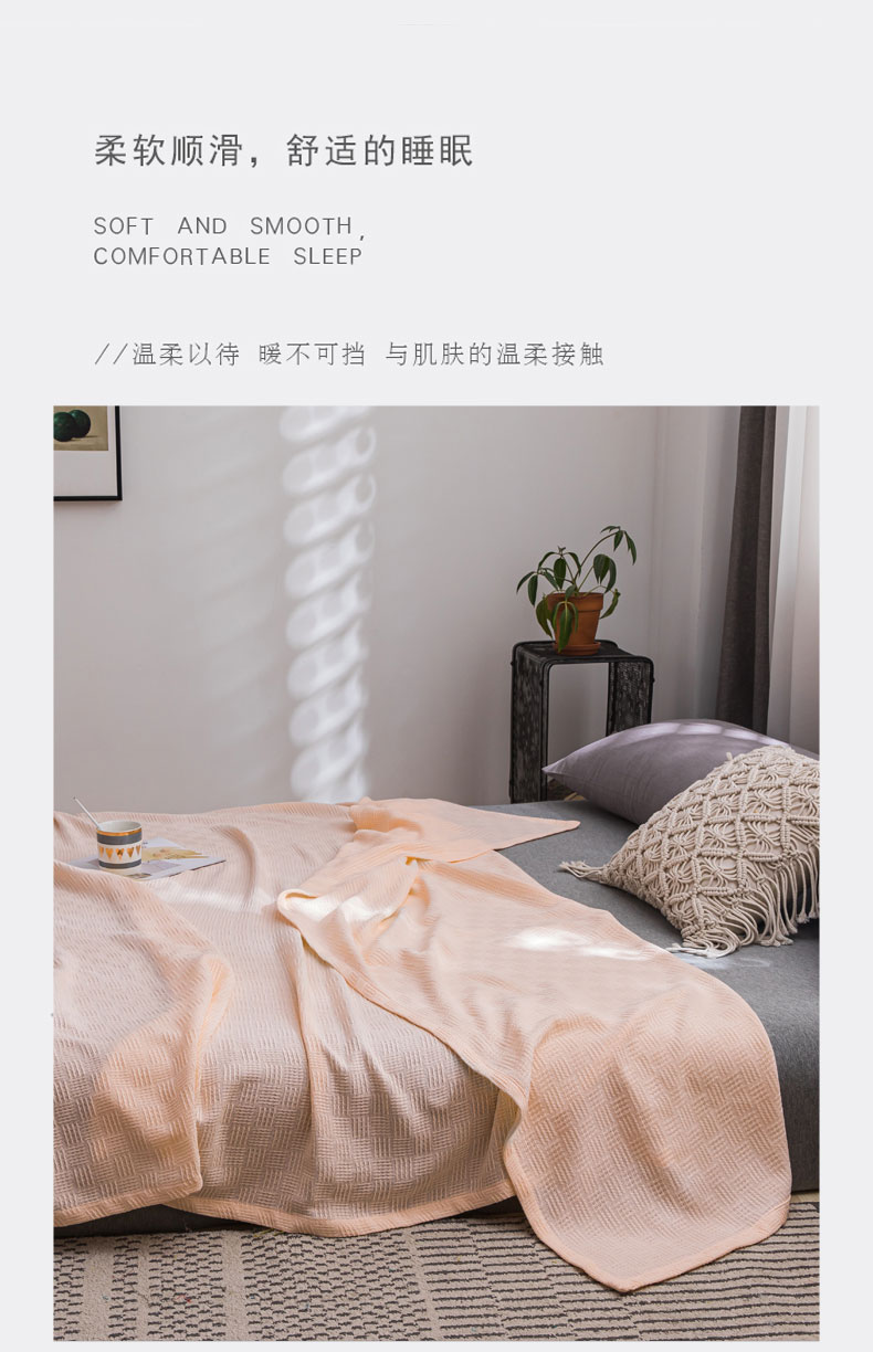 • 91家纺网 家纺一手货源 找家纺 朴尔家纺-毛巾被 2026新款加厚纯色线毯纱布毛巾被-朴尔经典款常年备货 素色纯棉肌理线毯-嫩粉