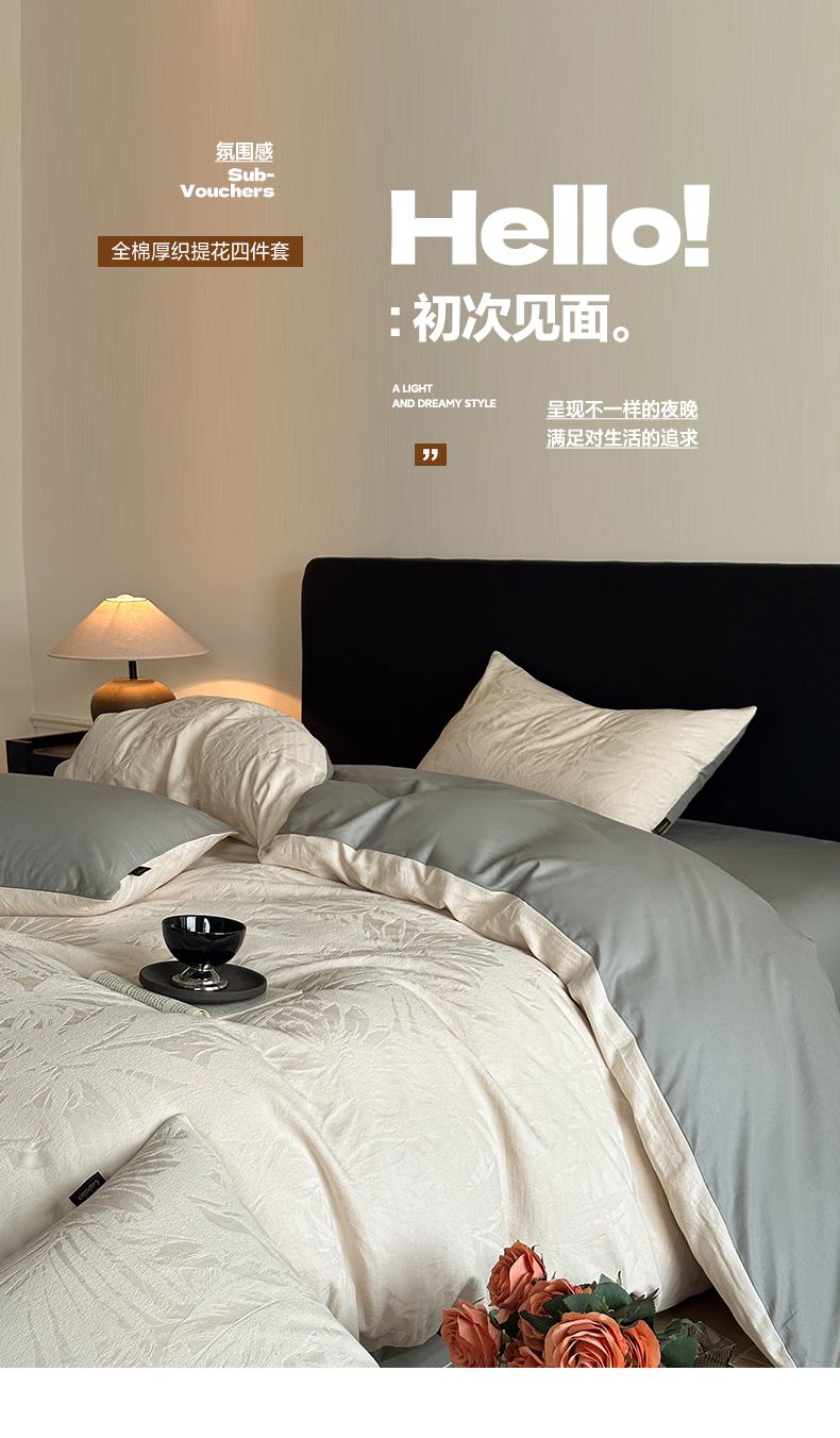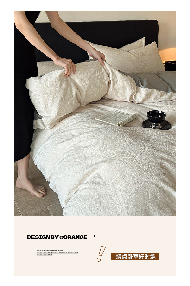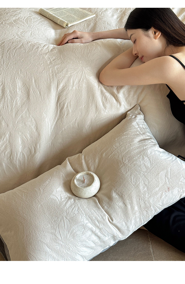 卡巴伦家纺 2026新款全棉厚织提花系列简约款四件套 戴妃-奶白