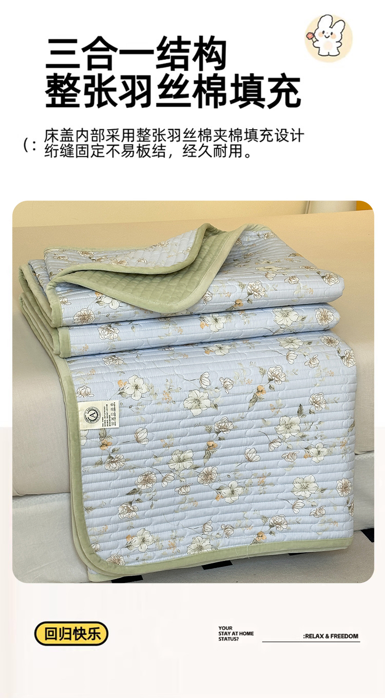 • 91家纺网 家纺一手货源 找家纺 凌云家纺 2026新款A类13372全棉床盖一面棉一面绒 静若幽兰