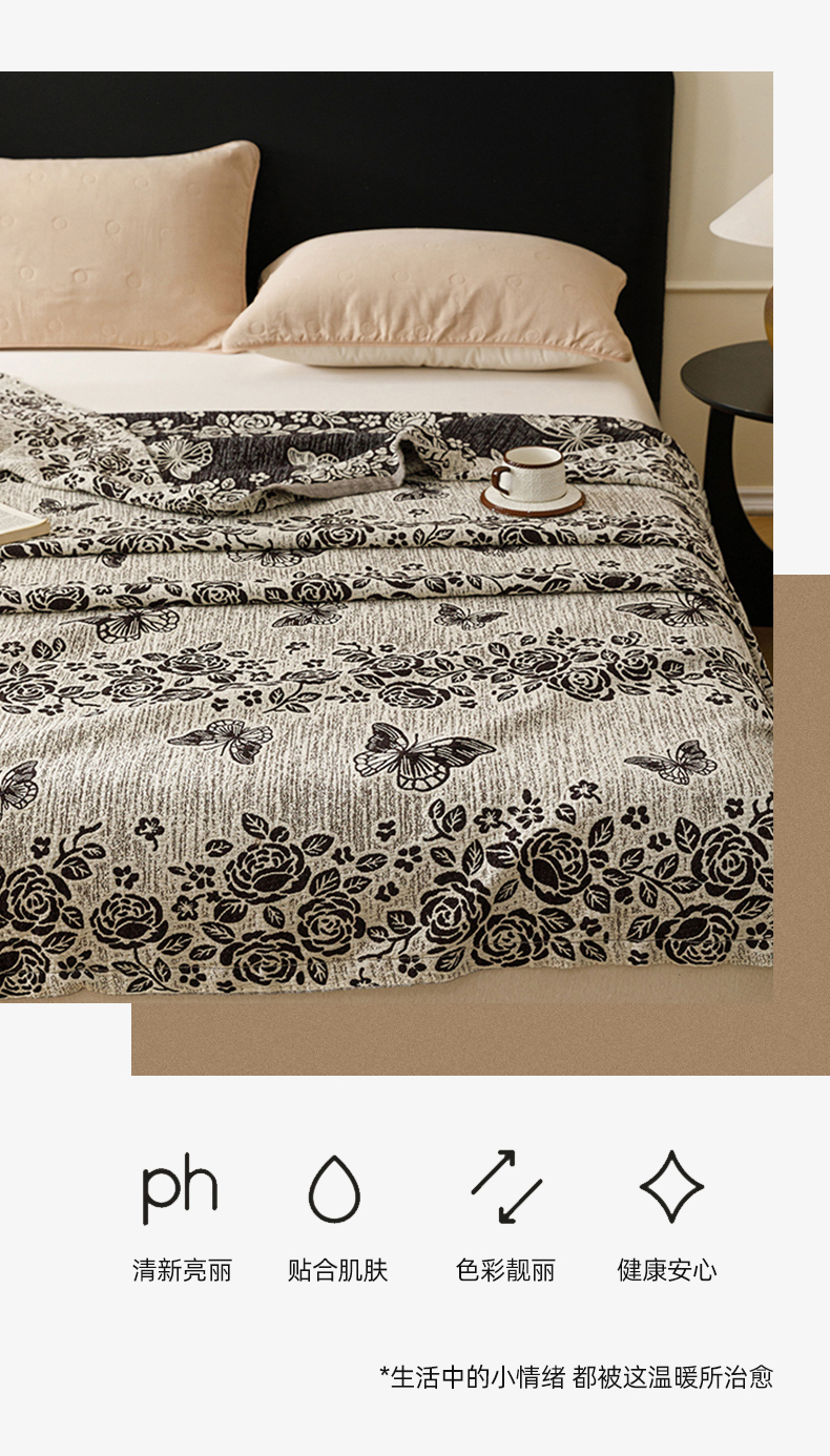 (总)悦然毛巾被 2026新款美拉德色织提花全棉纯棉纱布毛巾被夏被夏凉被空调被,花影蝶梦,花影蝶梦棕,简居,简居咖,夜宴玫瑰,夜宴玫瑰棕,组合图仅供展示不可下单