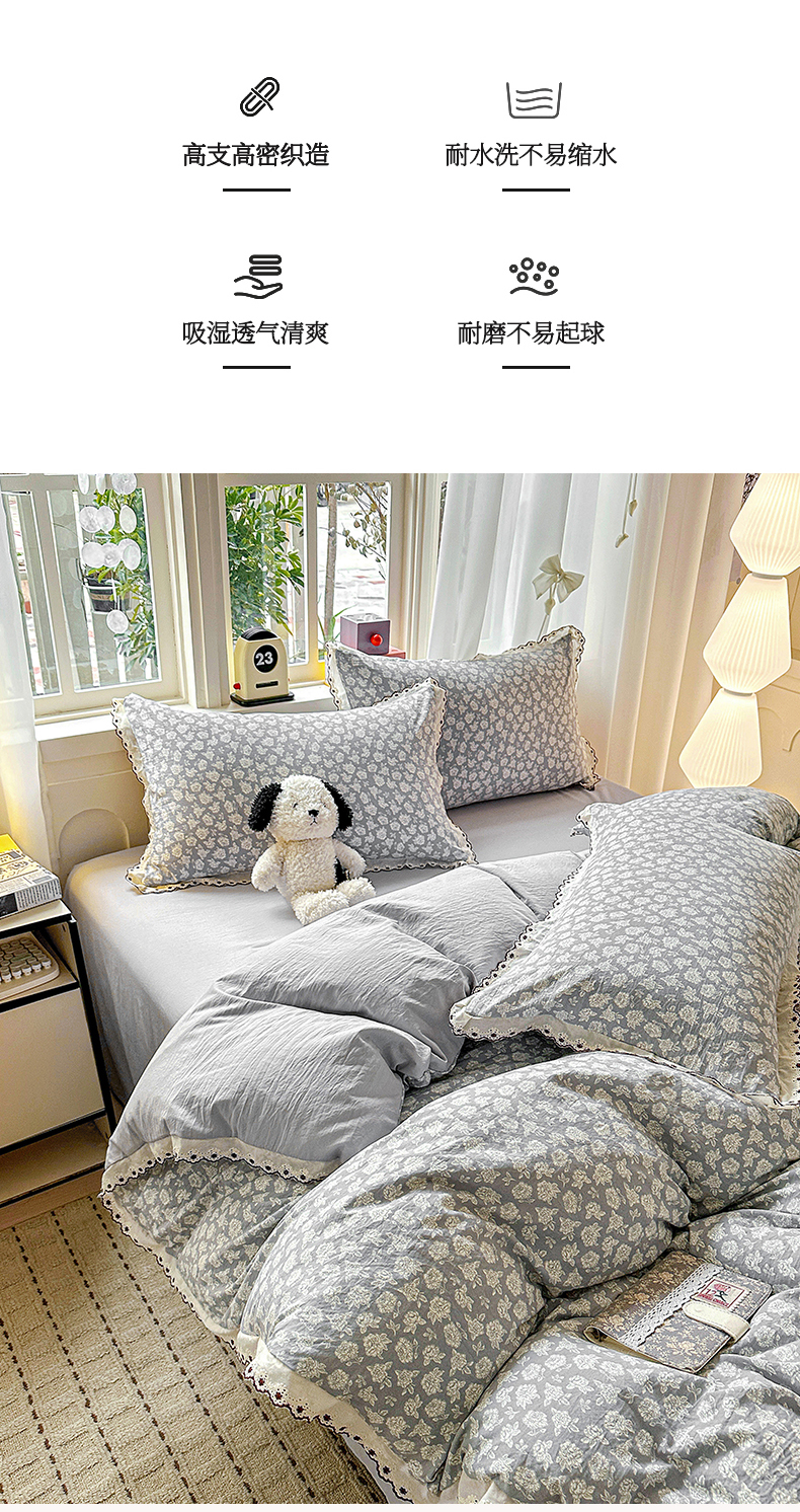 当前位置: 91家纺网 > 商品网购 > 床品套件 > 四件套 > 全棉普通四件套 > 韩秀家纺 2026新款A类纺棉四件套全棉花边古法水洗棉法式蕾丝花边四件套 旋转木马