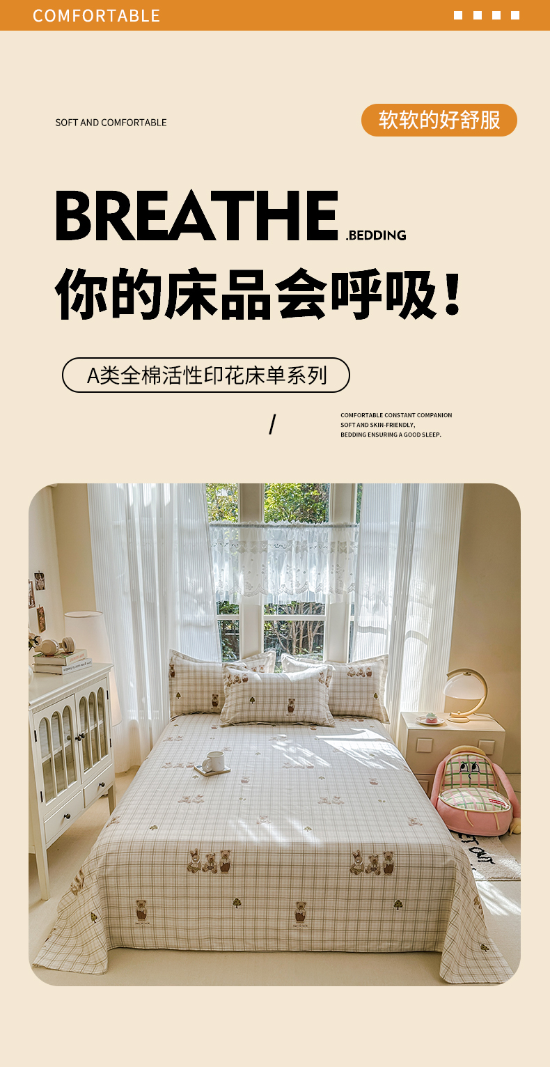 (总)帛织澜家纺 2026新款A类新疆全棉纯棉12868单品印花床单系列(预留缩水,提供质检报告),繁花锦年,果奇,花花熊宝,欢乐伙伴,静听花语,卡诺奇,恋恋花开,流浪星球,马到成功,萌友聚会,飘林,森林小镇,树拾光,碎花拾影,碎花学院,童话花町,鲜橙多,心动旋律,星空熊猫,樱芝