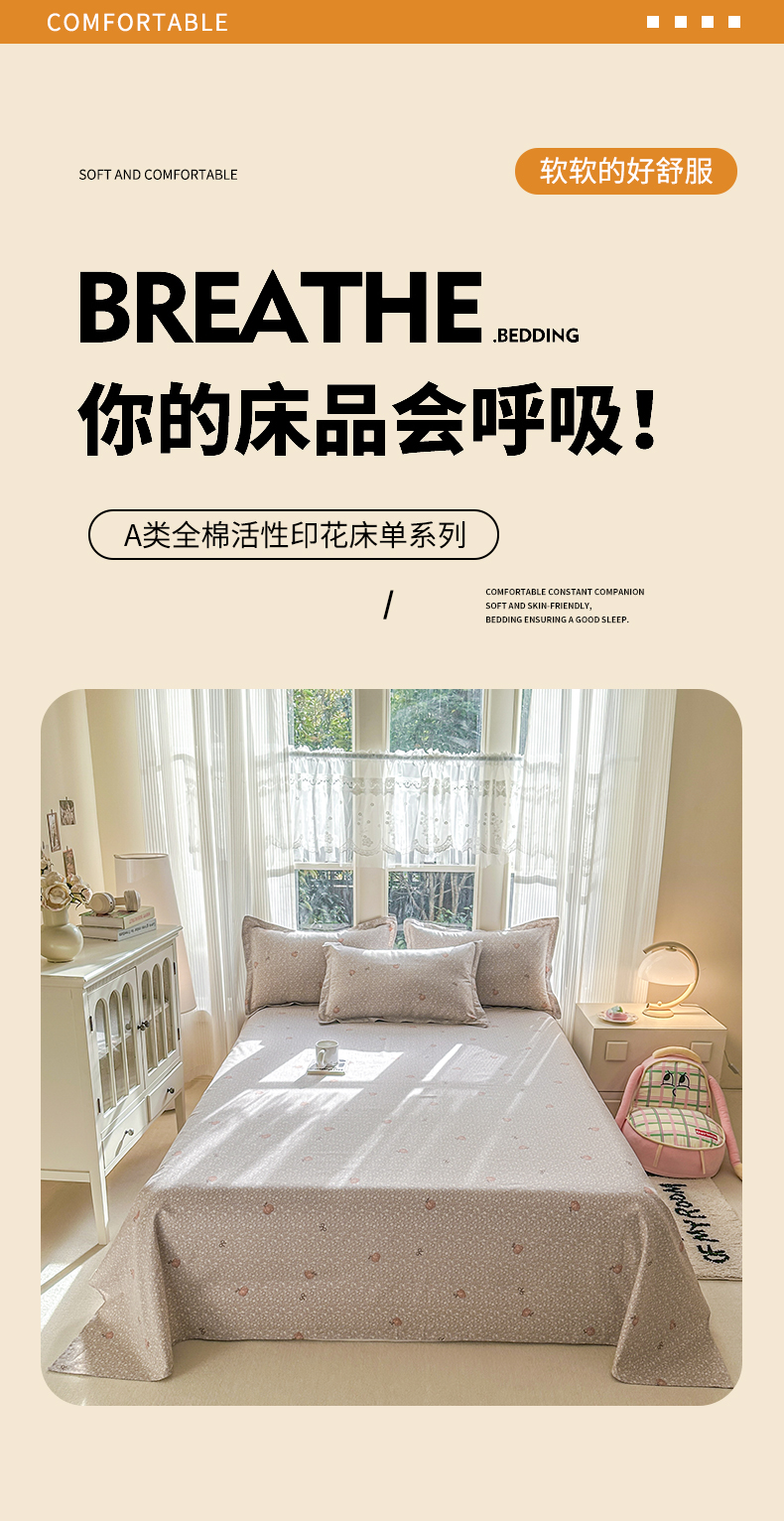 帛织澜家纺 2026新款A类新疆全棉纯棉12868单品印花床单系列(预留缩水,提供质检报告) 碎花拾影