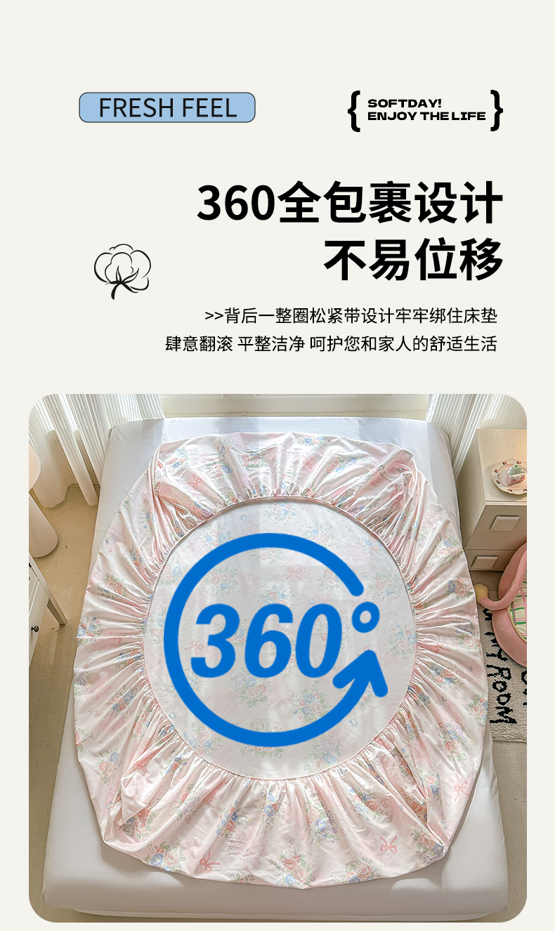 帛织澜家纺 2026新款A类新疆全棉纯棉12868单品印花床笠系列(预留缩水,提供质检报告) 静听花语