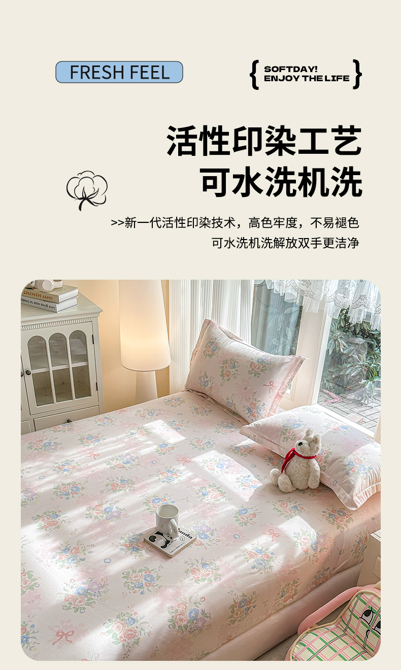 商品名称:帛织澜家纺 2026新款A类新疆全棉纯棉12868单品印花床笠系列(预留缩水,提供质检报告) 静听花语