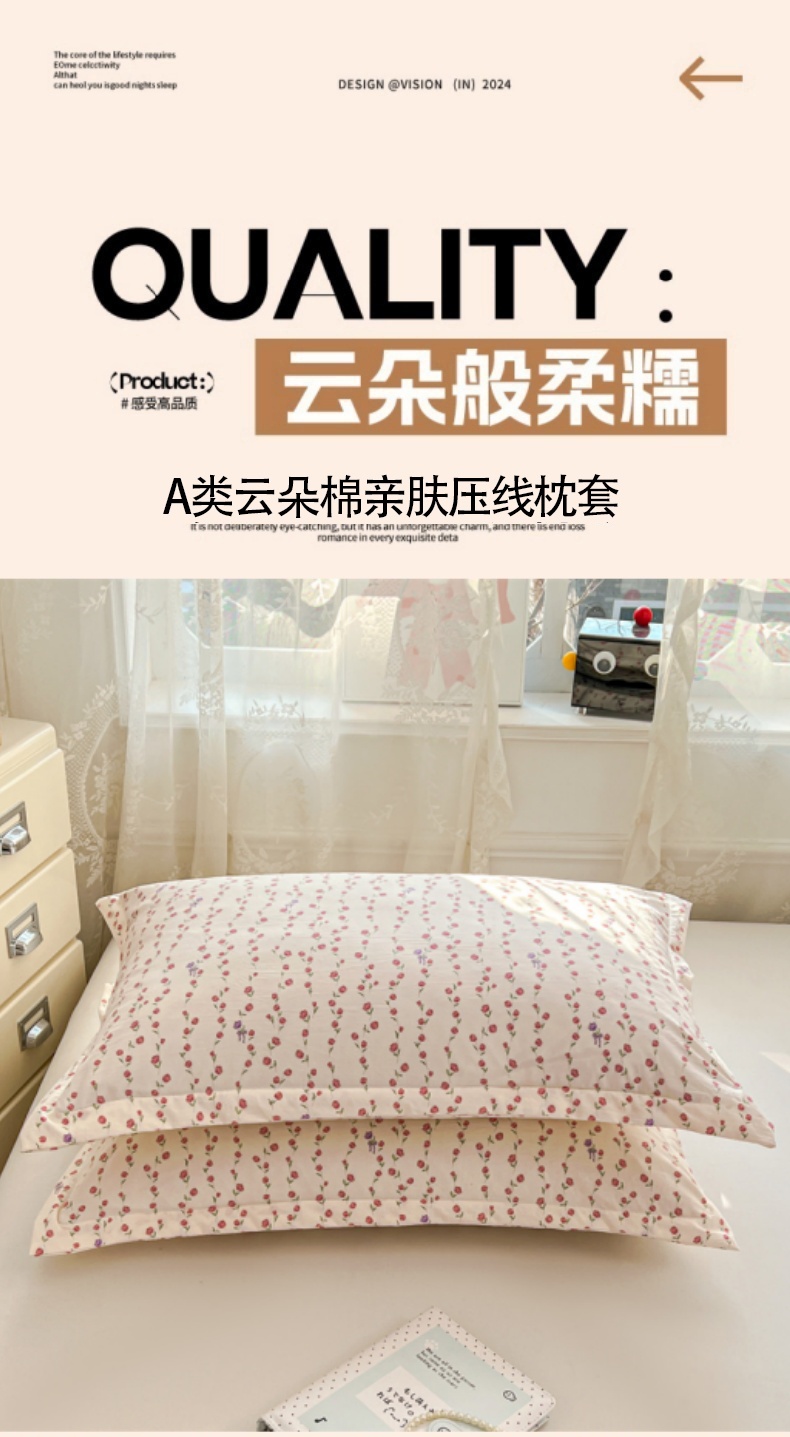 • 91家纺网 家纺一手货源 找家纺 圣比熊 2026新款A类云朵棉单层枕套宿舍单人单只一只装枕芯内胆套-单层压线 花漾甜心(单层压线)