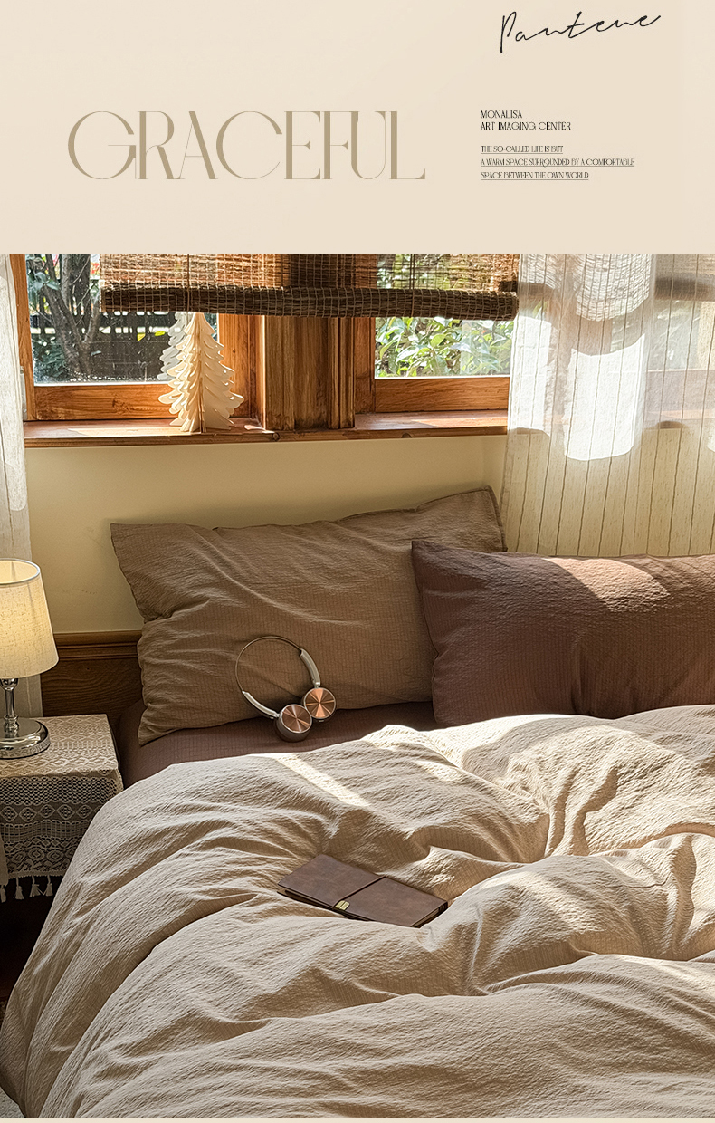 当前位置: 91家纺网 > 商品网购 > 床品套件 > 四件套 > 其它四件套 > 海岛哥哥 2026新款云感纱混搭纯色双拼四件套 混搭 茶色山野