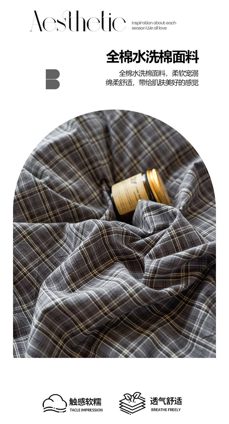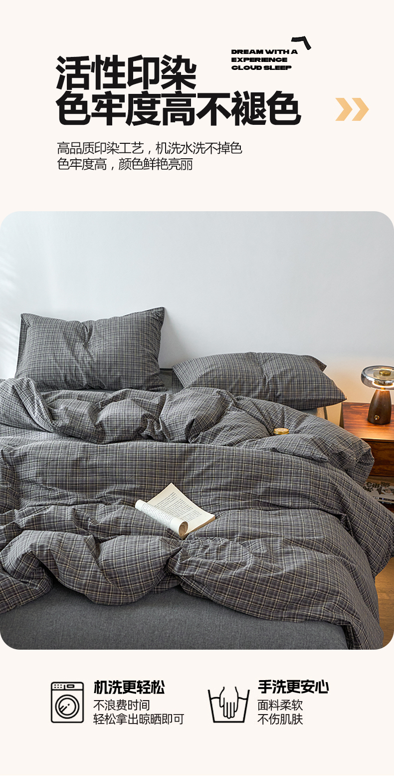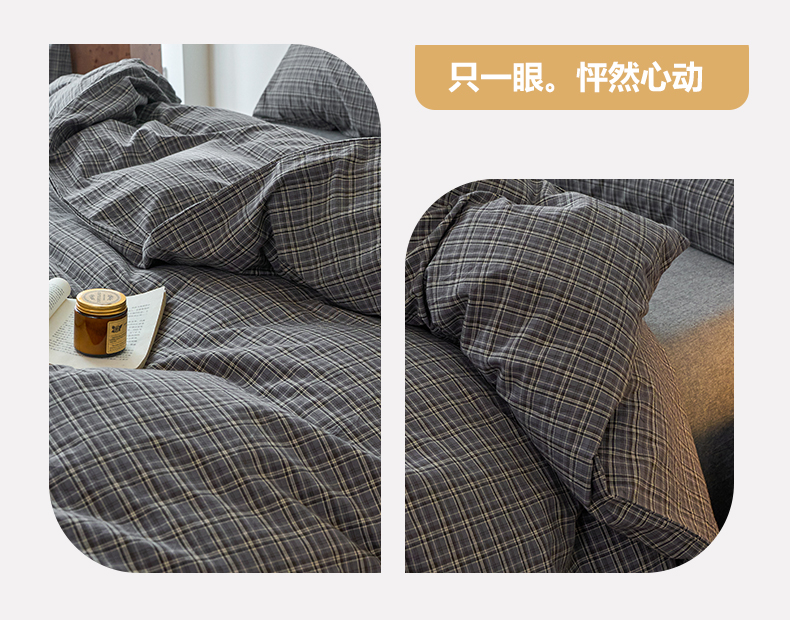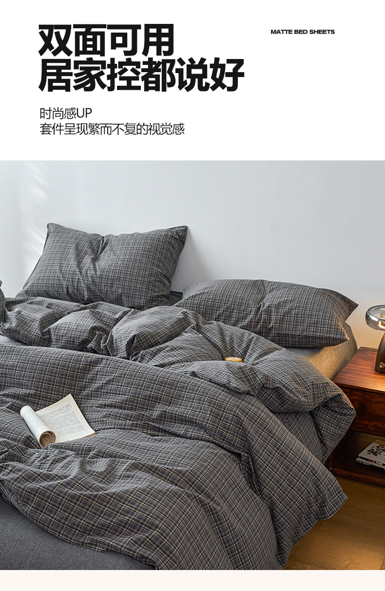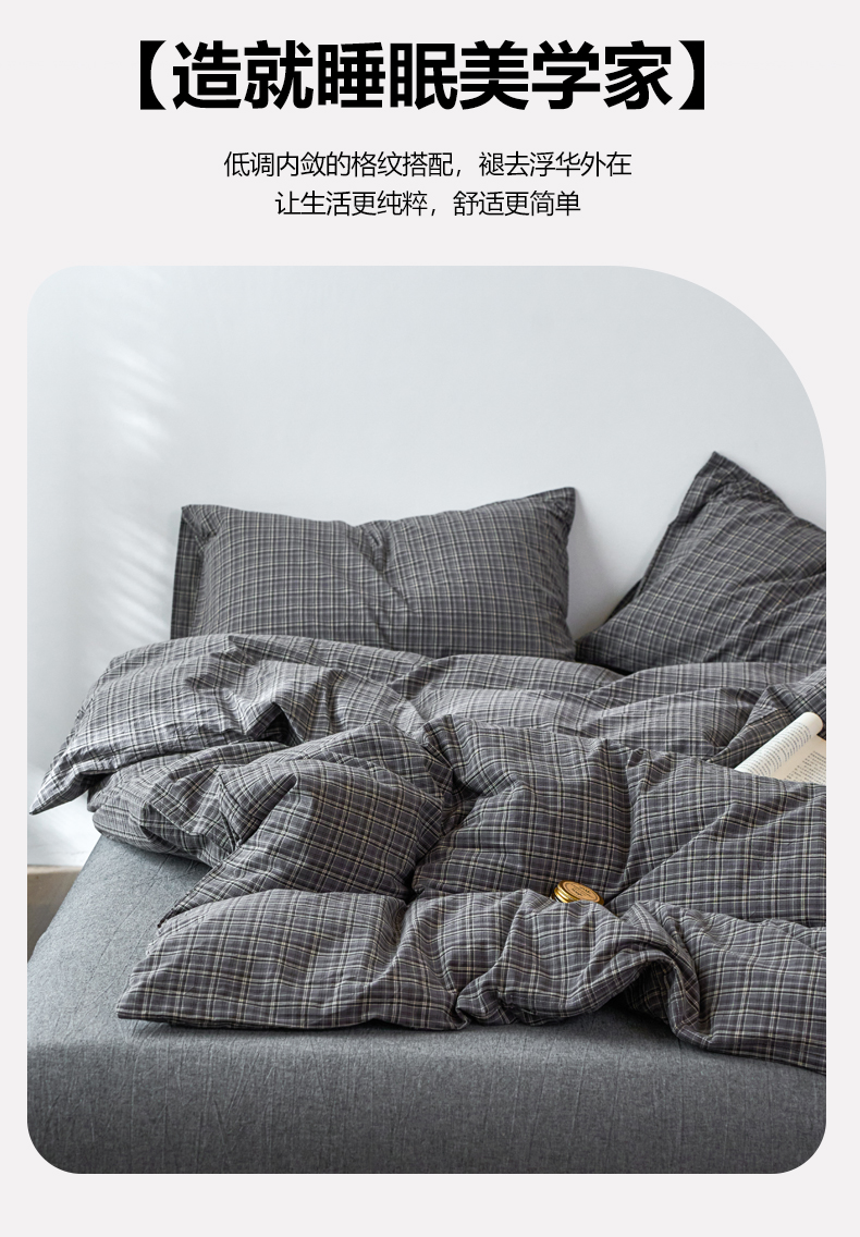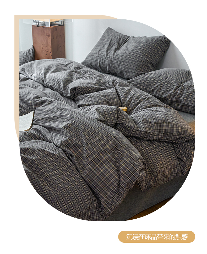当前位置: 91家纺网 > 商品网购 > 床品套件 > 四件套 > 全棉普通四件套 > 兰紫橙家纺 2026新款全棉A类深色复古色织方格子水洗棉-赫本雅素系列(含买家秀和质检报告) 莫奈灰