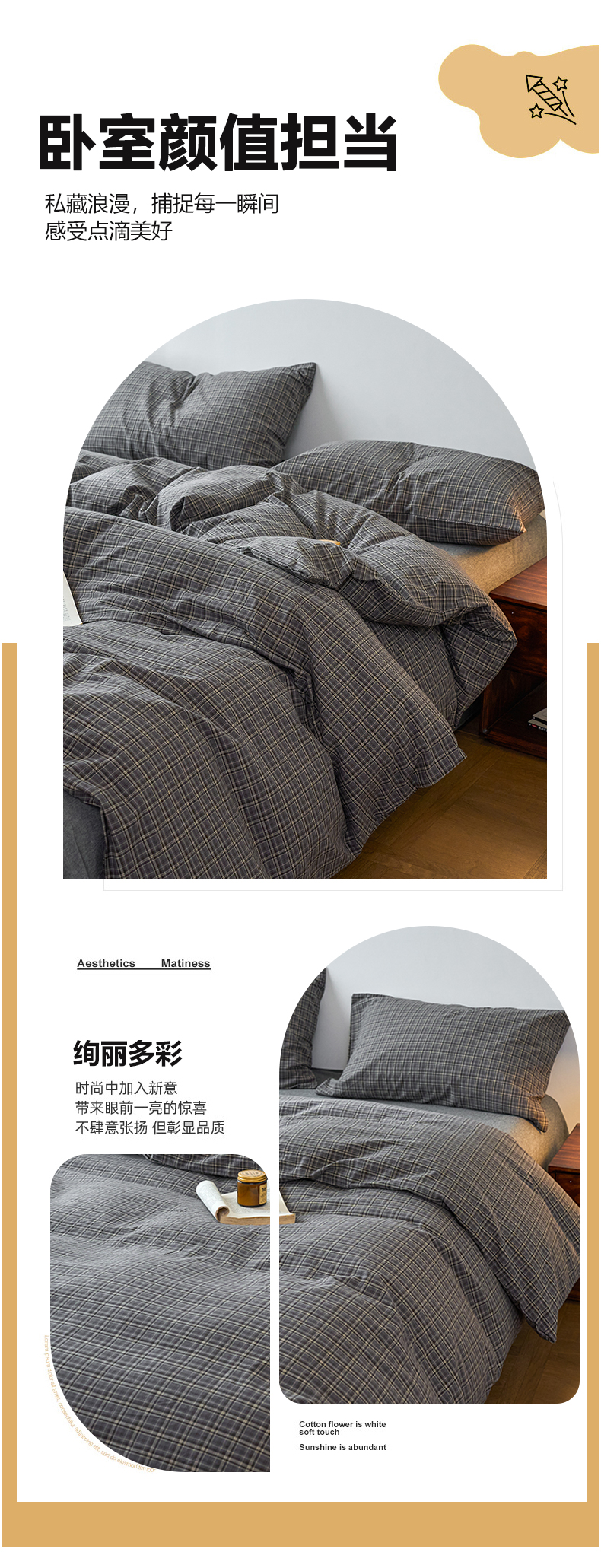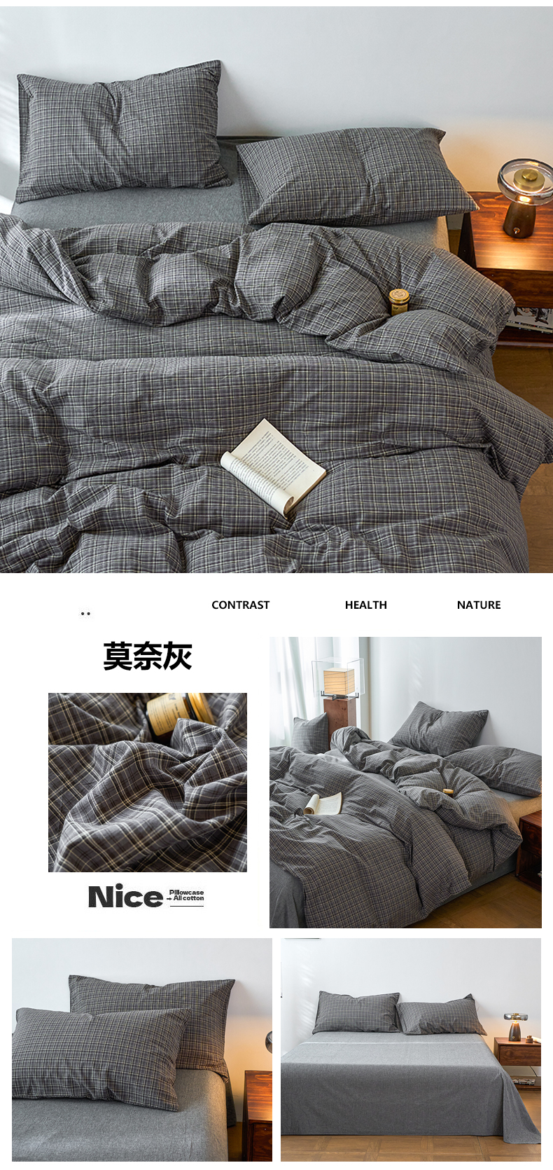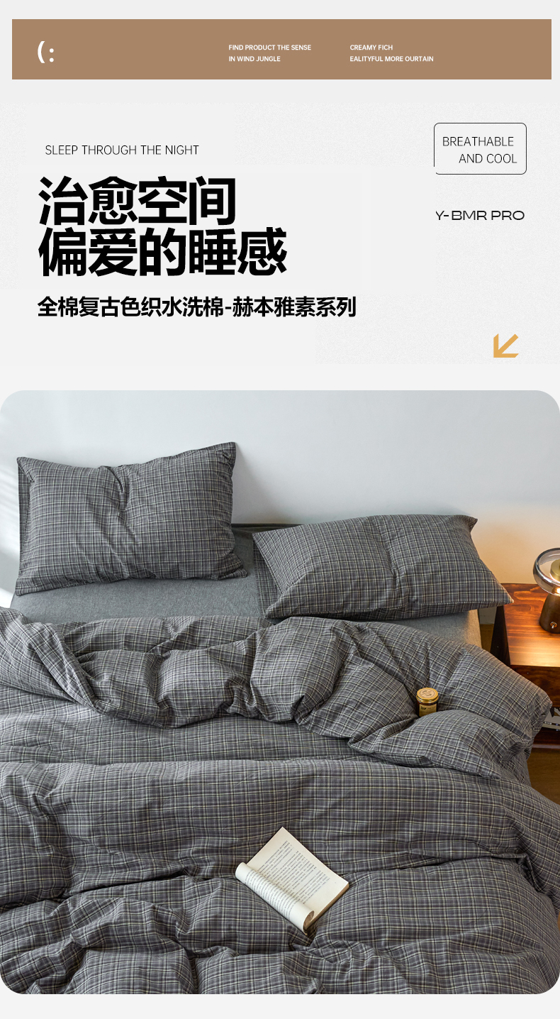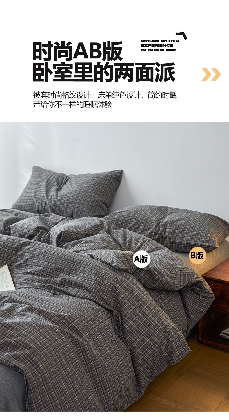 当前位置: 91家纺网 > 商品网购 > 床品套件 > 四件套 > 全棉普通四件套 > 兰紫橙家纺 2026新款全棉A类深色复古色织方格子水洗棉-赫本雅素系列(含买家秀和质检报告) 莫奈灰