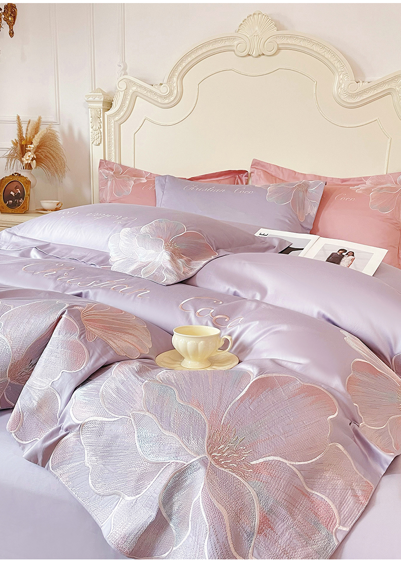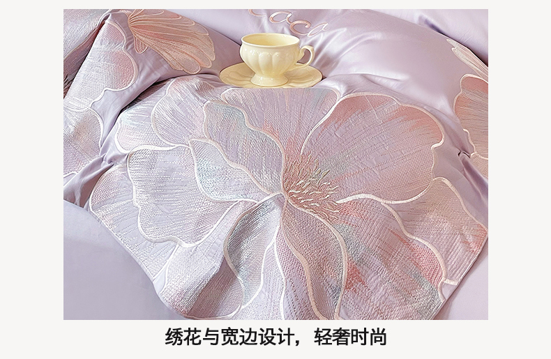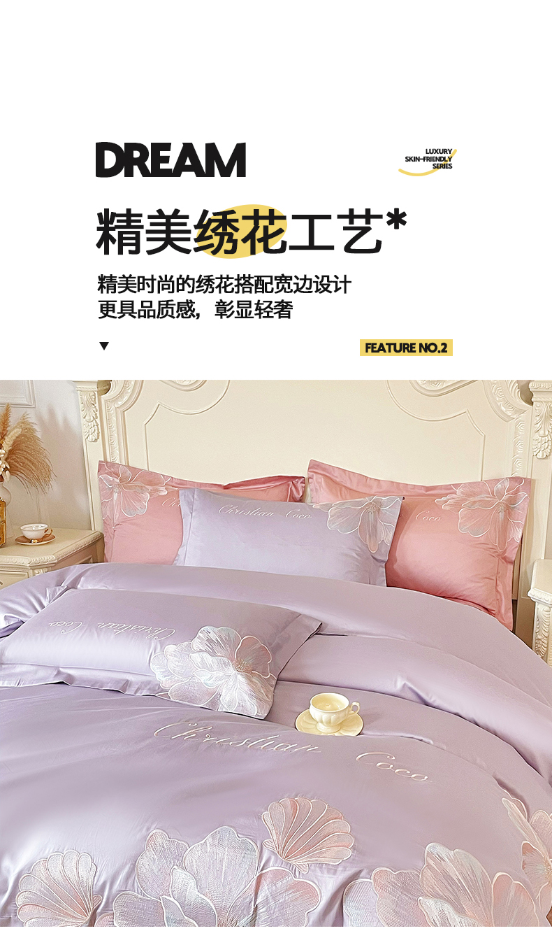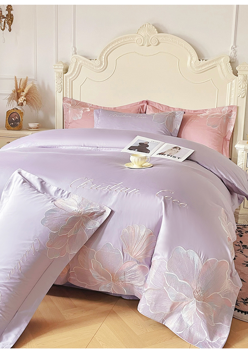 当前位置: 91家纺网 > 商品网购 > 床品套件 > 四件套 > 其它四件套 > 置顶家纺 2026新款亲肤绣花-COCO小姐亲肤棉系列四件套 COCO小姐-香芋紫